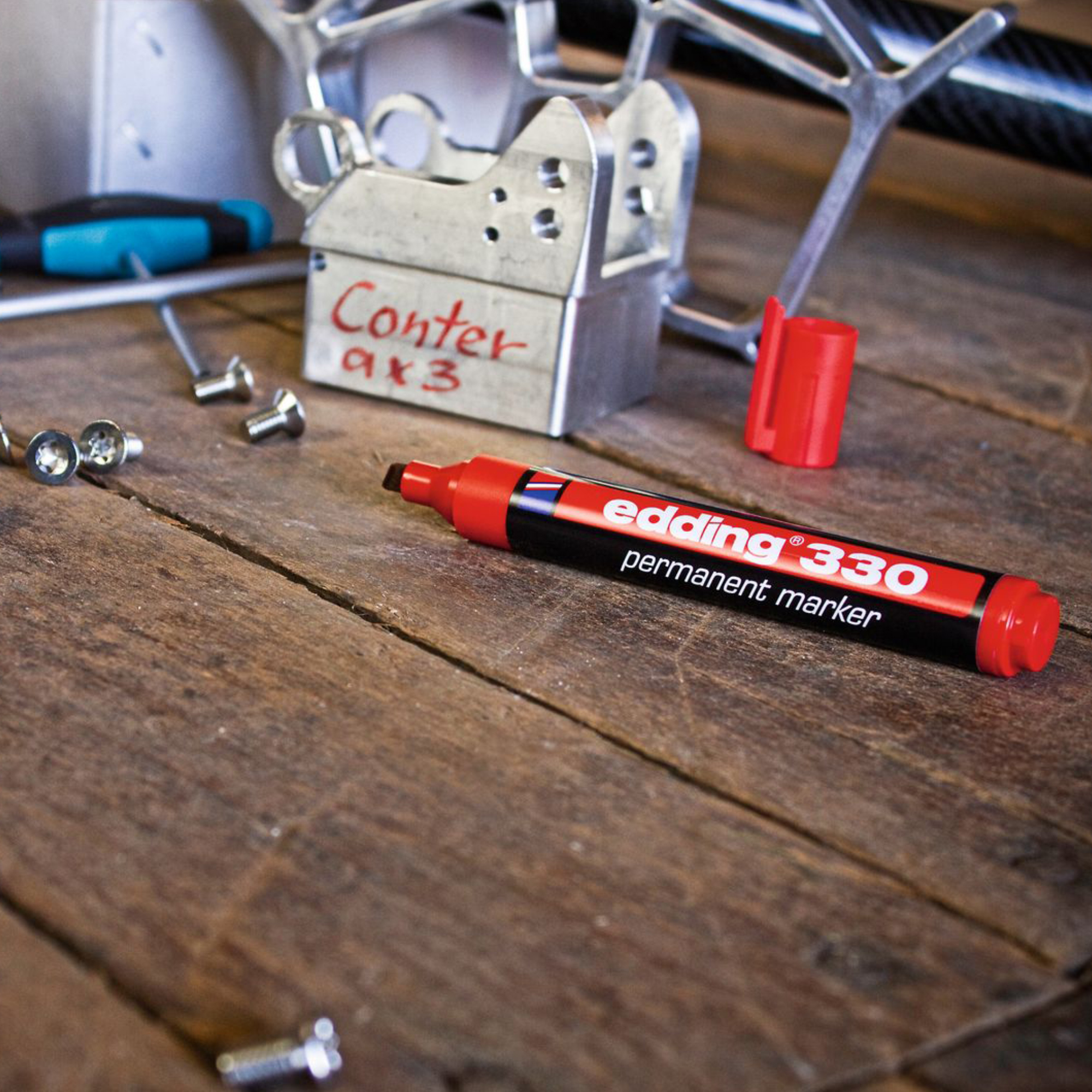 Svetlostály permanentný popisovač edding 400 na precízne značenia s tenkou stopou. Vhodný na trvalé popisovanie takmer všetkých materiálov ako je sklo, kovové materiály, fólie, drevo, koža a plasty. Nezmazateľný atrament má dobrú odolnosť voči svetlu, vode a oderu. Popisovač plastovým telom má okrúhly hrot, stopa písma 1mm. Dopĺňateľné atramentom edding T25. Neobsahuje xylén ani toulén. Farba: červená