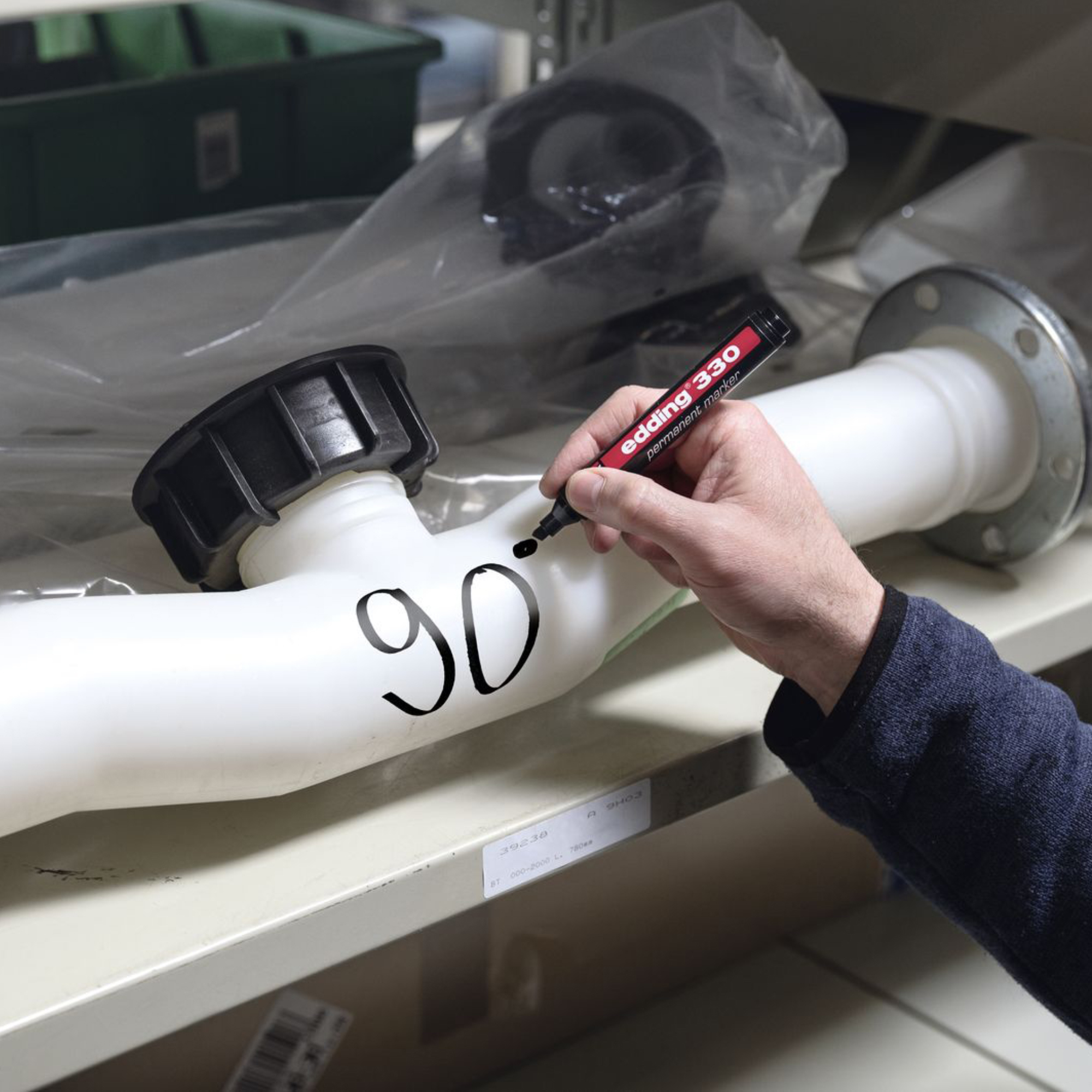 Univerzálny permanentný značkovač na označovanie rôznych povrchov. Jeho odolnosť voči vode, oteru, poveternostným vplyvom a teplote do 100 °C zabezpečuje, že vaše označenia zostanú trvalé a nezmazateľné. Vďaka alkoholovej báze je značkovač vhodný pre širokú škálu materiálov a povrchov. S valcovým hrotom ponúka plynulé a presné písanie, pričom šírka stopy 2,5 mm umožňuje vytvárať jasné a dobre čitateľné označenia. 57 % materiálu použitého pri výrobe je recyklovaného, čím sa prispieva k ochrane životného prostredia.. Farba: čierna Balenie: 1 ks