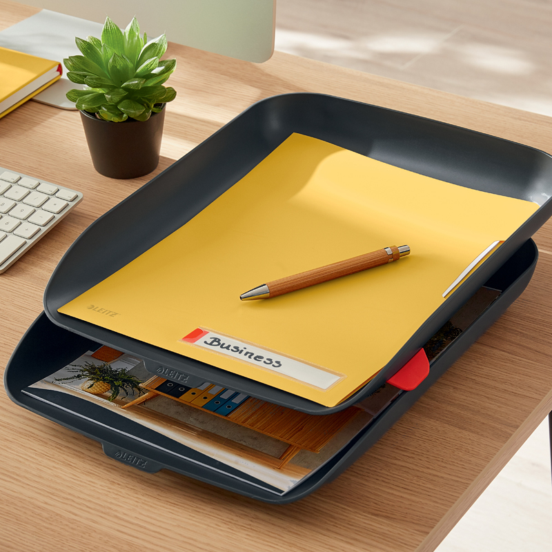 Vďaka odkladačom Leitz Cosy môžete mať dokumenty usporiadané a na dosah ruky. Vhodné na ukladanie papierov, časopisov a dokumentov veľkosti A4 a C4 vo formáte folio aj letter. Tento odkladač na dokumenty je perfektným doplnkom vášho domova alebo kancelárie, poriadok v dokumentoch vám pomôže pracovať oveľa efektívnejšie. Odkladače je možné stohovať (max. 3 odkladače). Ľahký prístup k dokumentom vďaka veľkému otvoru vpredu, aj keď sú zásobníky v stohu nad sebou. Kolekcia Leitz Cosy kombinuje komfort domáceho pohodlia s prvotriednou kvalitou a vytvára tak pozitívne a produktívne pracovné prostredie. Rozmery 268 x 43 x 358mm