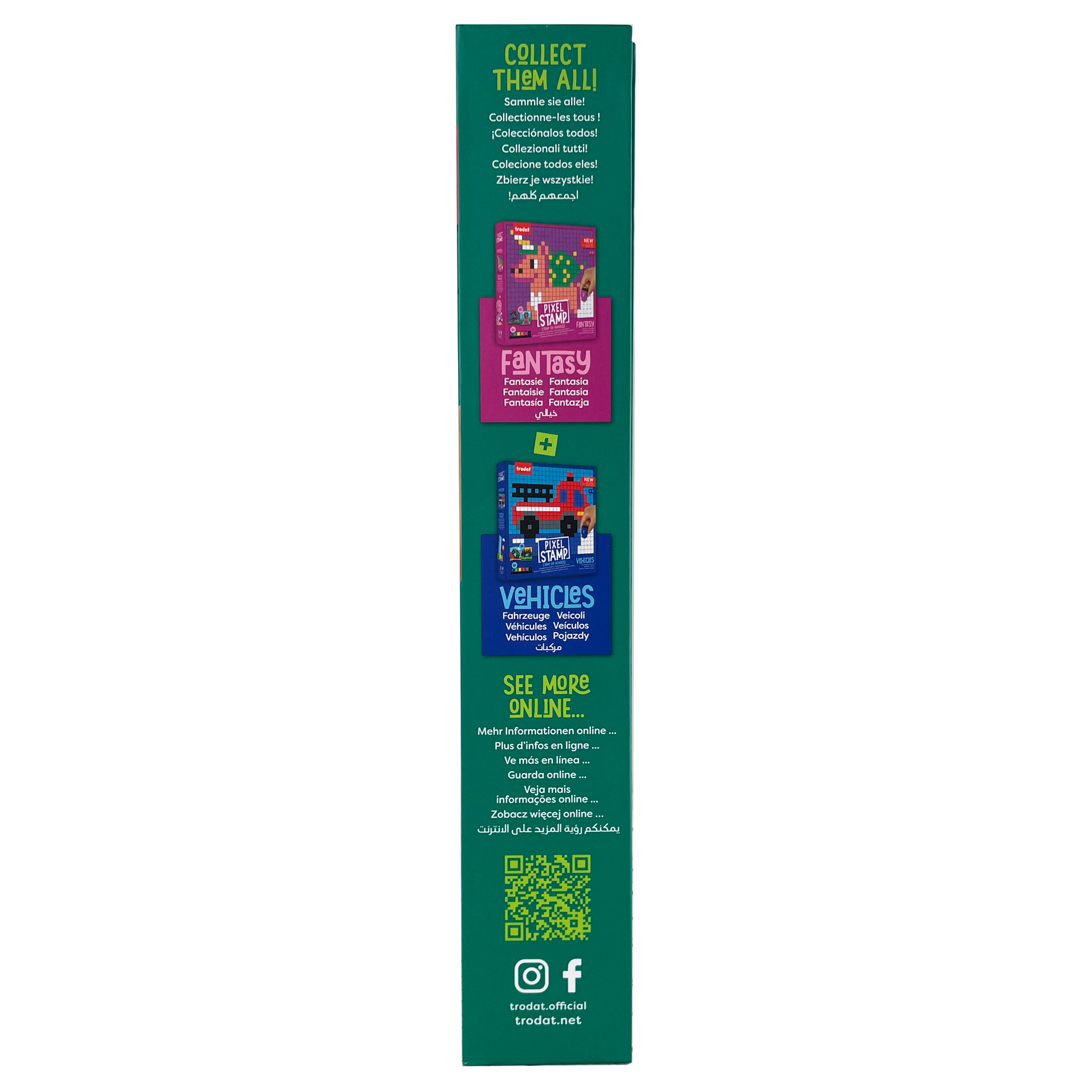 Sada farebných pečiatok a zošit so špeciálnymi šablónami s pixelmi. Každý pixel má priradenú konkrétnu farbu a deti pečiatkujú jednotlivé body a postupne odhaľujú skrytý obrázok. Kombinácia pixel artu a pečiatkovania podľa čísel robí z hračky intuitívnu, kreatívnu a zábavnú činnosť, ktorá rozvíja jemnú motoriku a súčasne aj fantáziu detí.