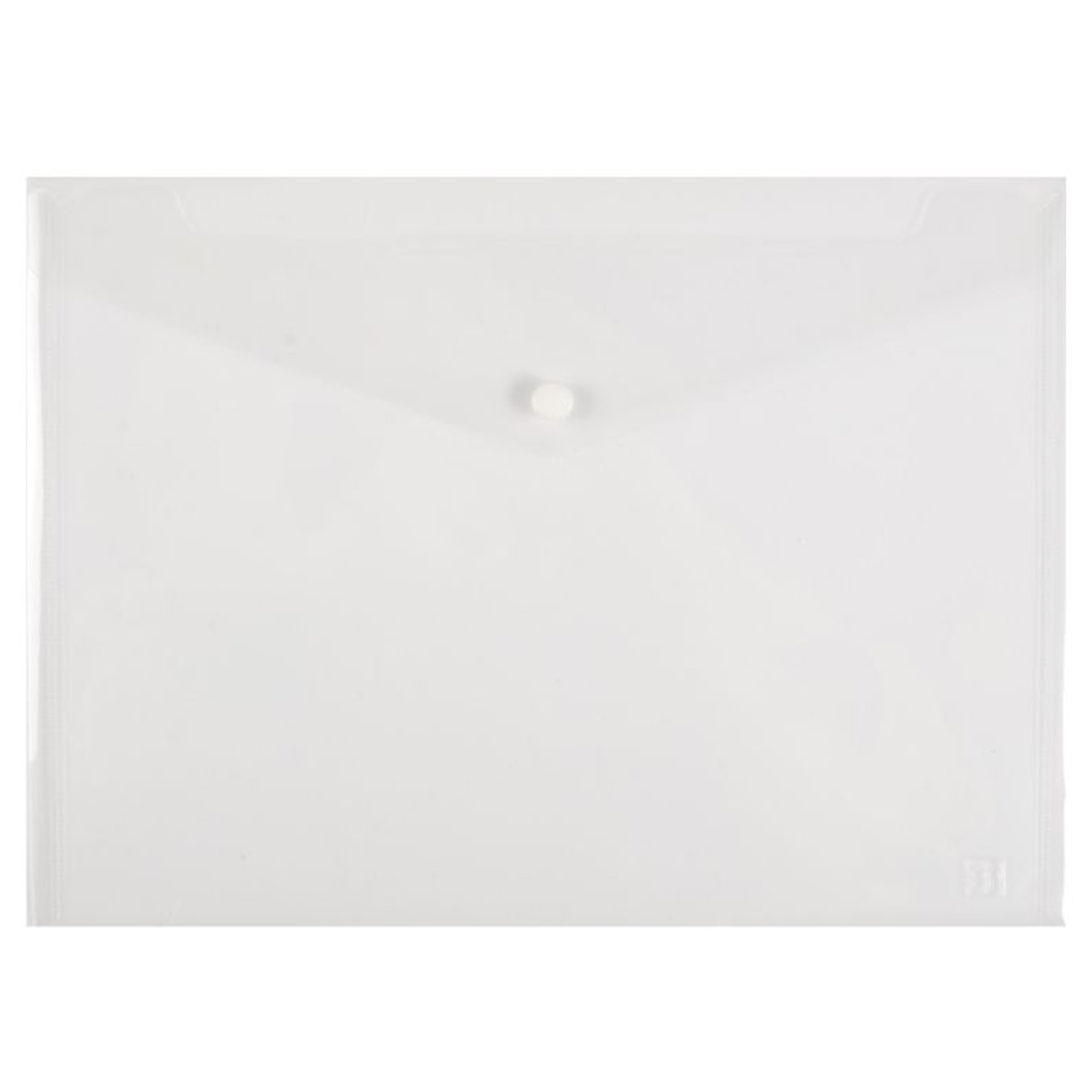 Obal v tvare listovej obálky vyrobený z priesvitného polypropylénu s hrúbky 180 mikrónov. Vhodný na bezpečný prenos a uloženie dokumentov do formátu A3. Spoľahlivé uzatváranie na cvok chráni obsah pred vypadnutím a zabezpečuje jednoduchú manipuláciu. Praktické riešenie na každodenné používanie v škole, kancelárii či domácnosti.