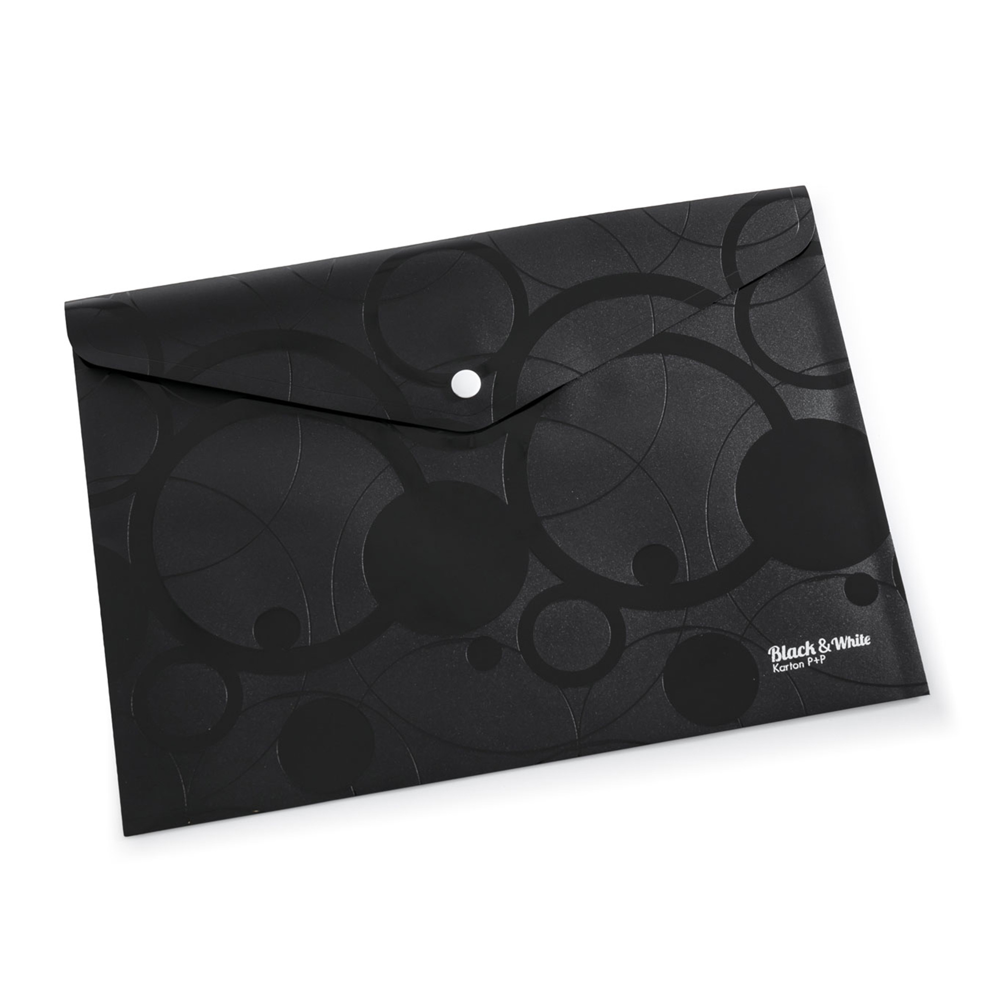 Štýlový obal v tvare listovej obálky z dizajnovej rady Black and White je ideálny na každodenné používanie v škole, kancelárii aj domácnosti. Vďaka spoľahlivému uzatváraniu na cvok zostanú vaše dokumenty vždy bezpečne uložené a chránené pred vypadnutím či poškodením.