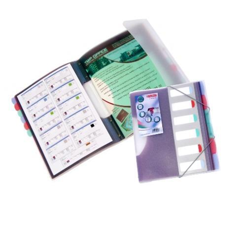 Triediaca kniha je praktickým a elegantným riešením na zakladanie voľných listov a aich bezpečné prenášanie. Kniha má 6 listov k zakladaniu. Krycí obal vyrobený z plastu.