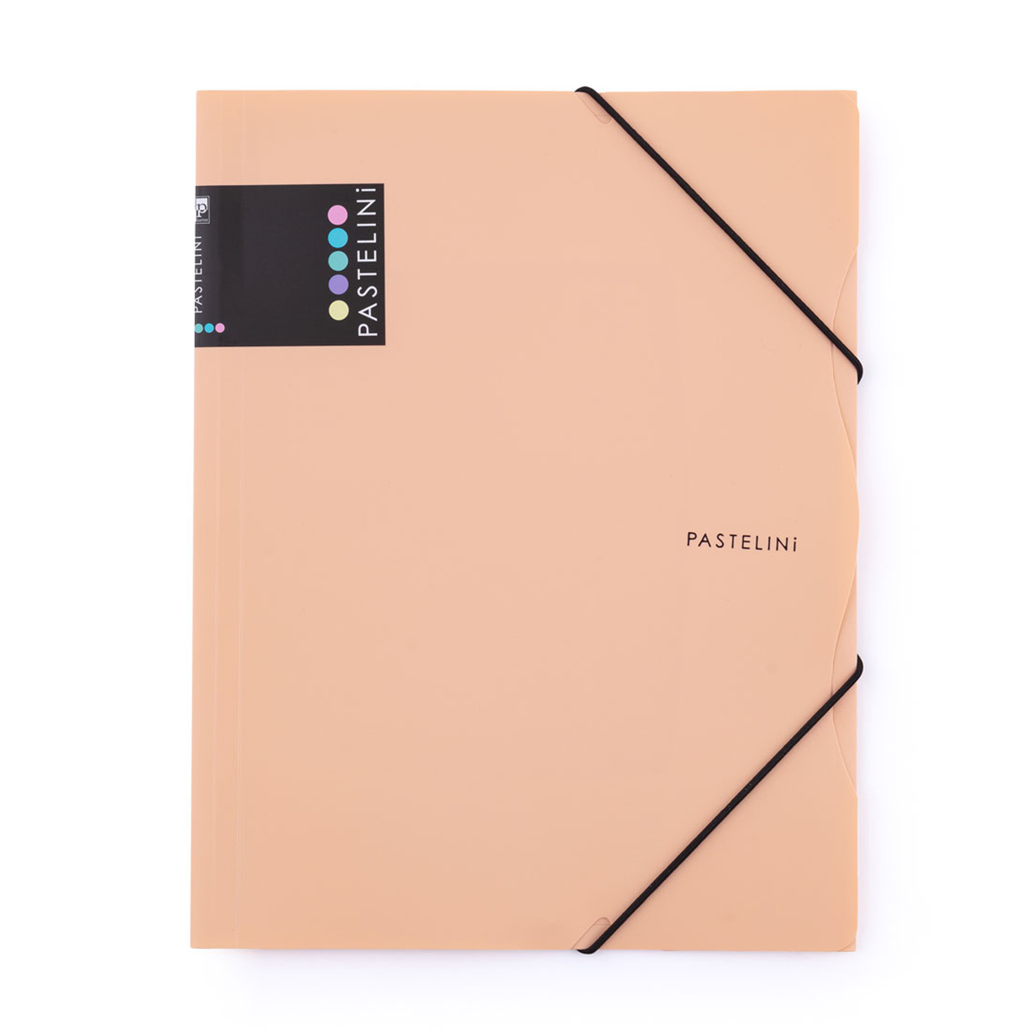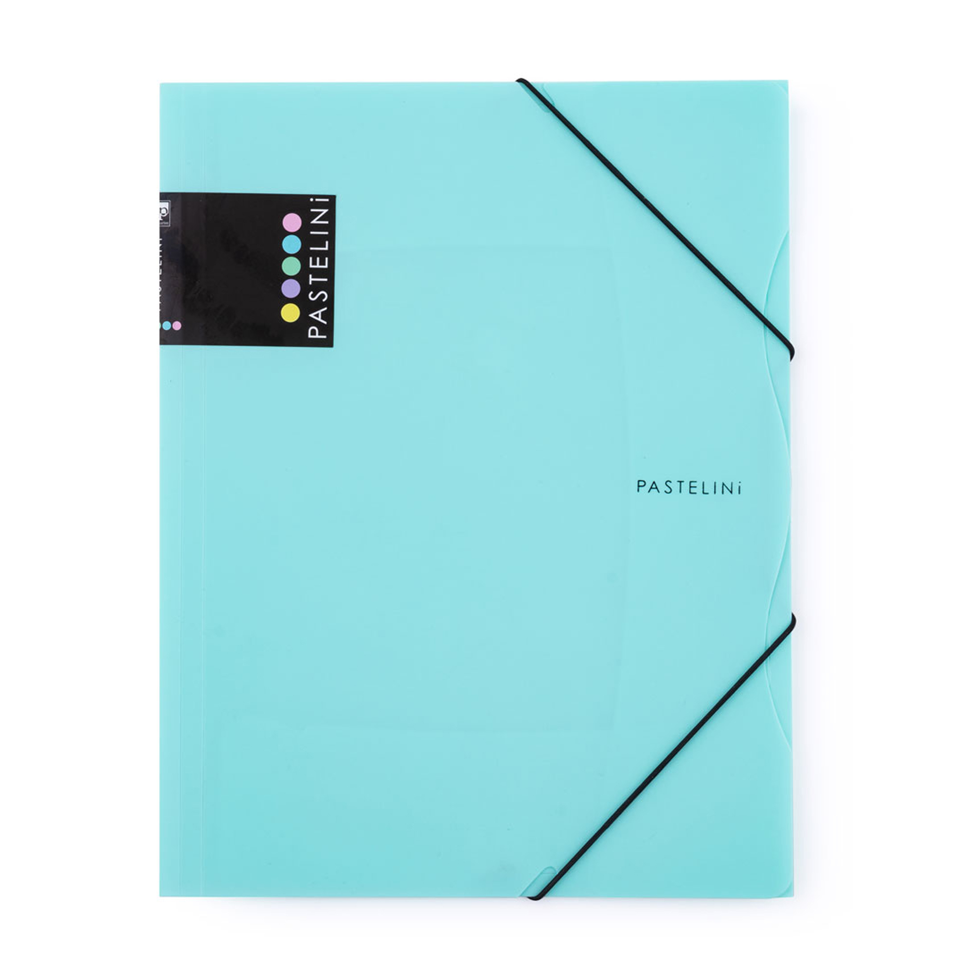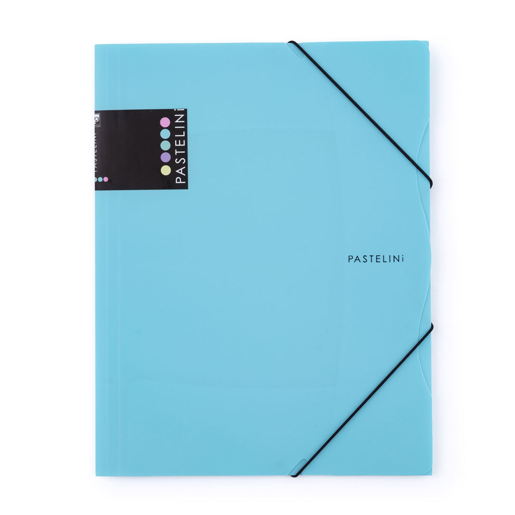 Obal s tromi chlopňami s gumičkou z radi PASTELINi. Má rozširujúci chrbát až do 3 cm. Kapacita obalu 1- 250 listov. Formát A4. Vyrobené s pevného polypropylénu 450 mic.