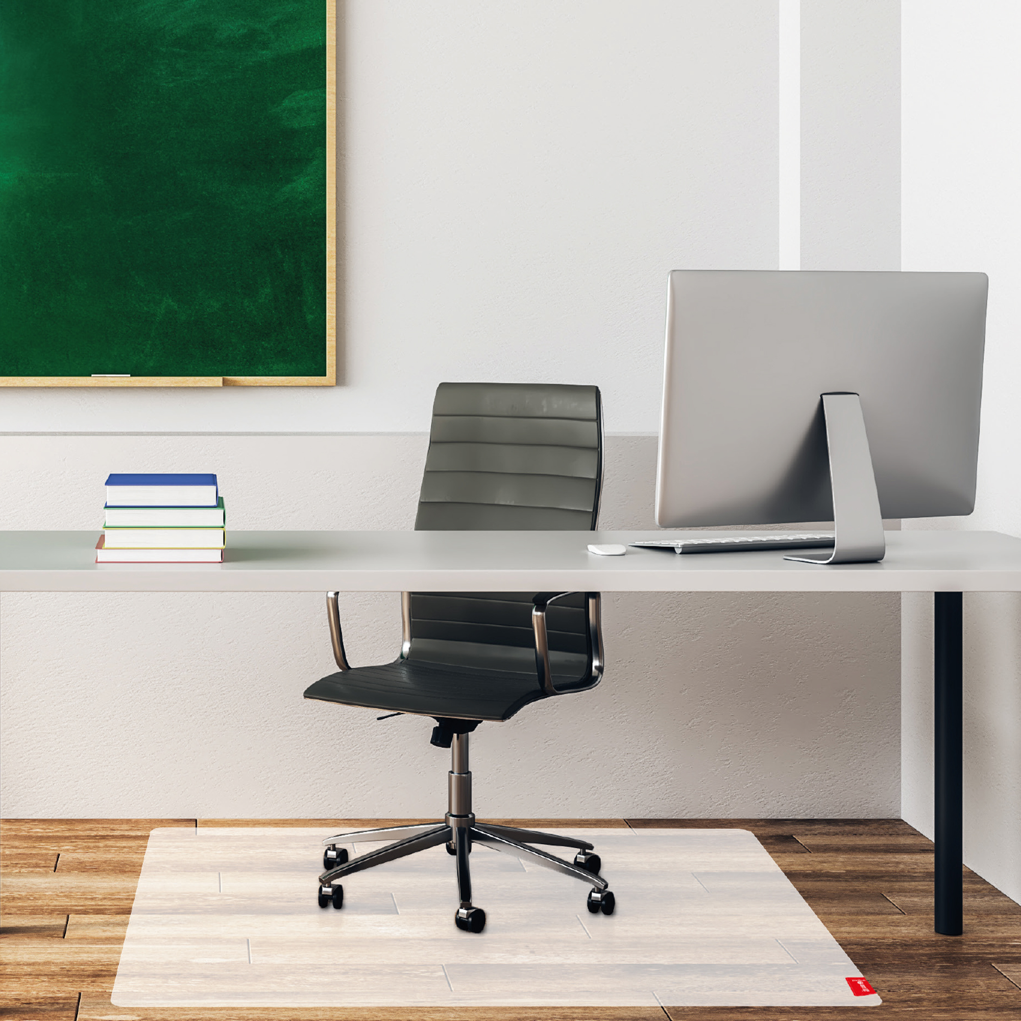 Podložka pod stoličky vhodná pre všetky typy podlahových krytín. Chráni podlahu pred poškodením, poškrabaním a znečistením. Vyrobené z PET - transparentnej . Vysoko odolný materiál. Protišmyková vrstva zo spodnej strany podložky. Odolnosť proti tlaku všetkých typov koliesok. Bezpečné oblé hrany. Ľahký chod kancelárskych stoličiek.