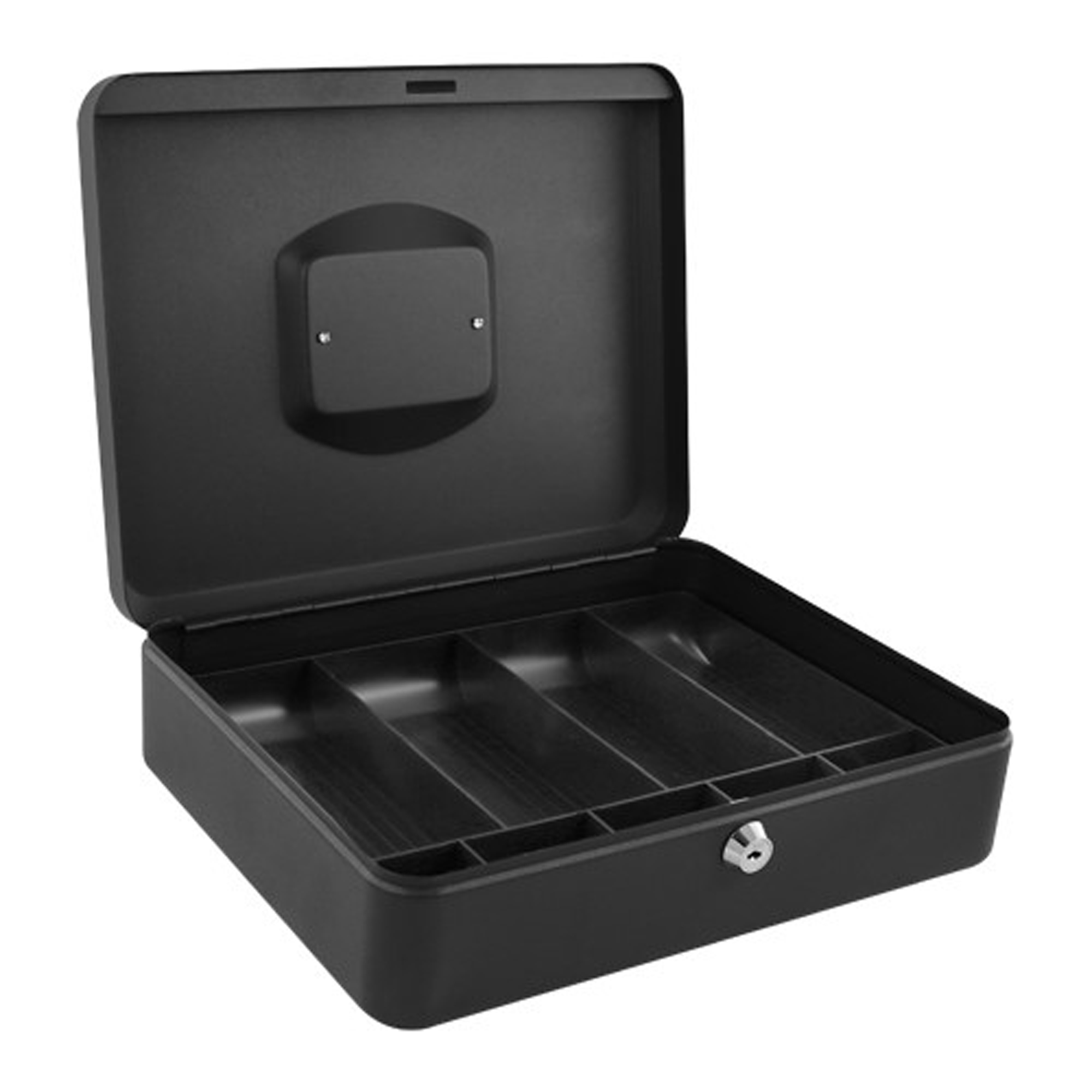 Uzamykateľné pokladničky z oceľového plechu pre bezpečné uloženie bankoviek, mincí a iných cenností. Zapustená tvarovaná rúčka zaručuje jednoduchý prenos. Má vyberateľnú plastovú priehradku na mince a bankovky. Dodávané s dvoma kľúčmi.