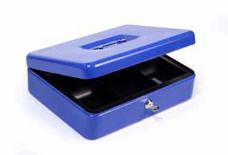 Kovová uzamykateľná pokladňa z oceľového plechu pre bezpečné uloženie bankoviek, mincí a iných cenností. Zapustená rúčka pre jednoduchý prenos a úschovu. Má vyberateľnú plastovú priehradku na mince. Dodávané s dvoma kľúčmi. Rozmer: 25,7 x 18 x 8cm. Farba: modrá