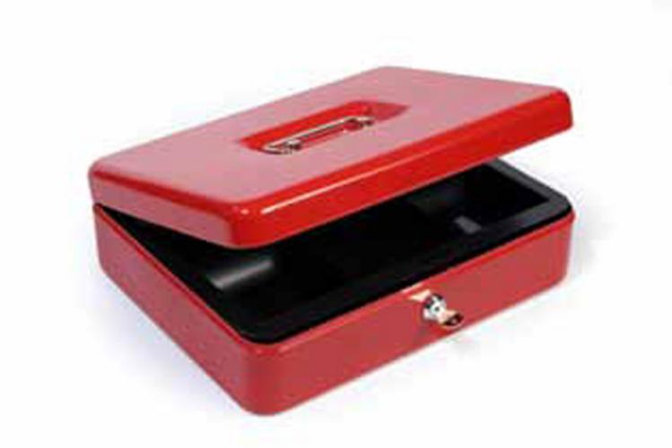 Uzamykateľné pokladničky z ocelového plechu pre bezpečné uloženie bankoviek, mincí a iných cenností. Komfortná rúčka zaručuje jednoduchý prenos. Má vyberateľnú plastovú priehradku na mince a bankovky. Dodávané s dvoma kľúčami. Rozmer: 300x240x90mm Farba: červená