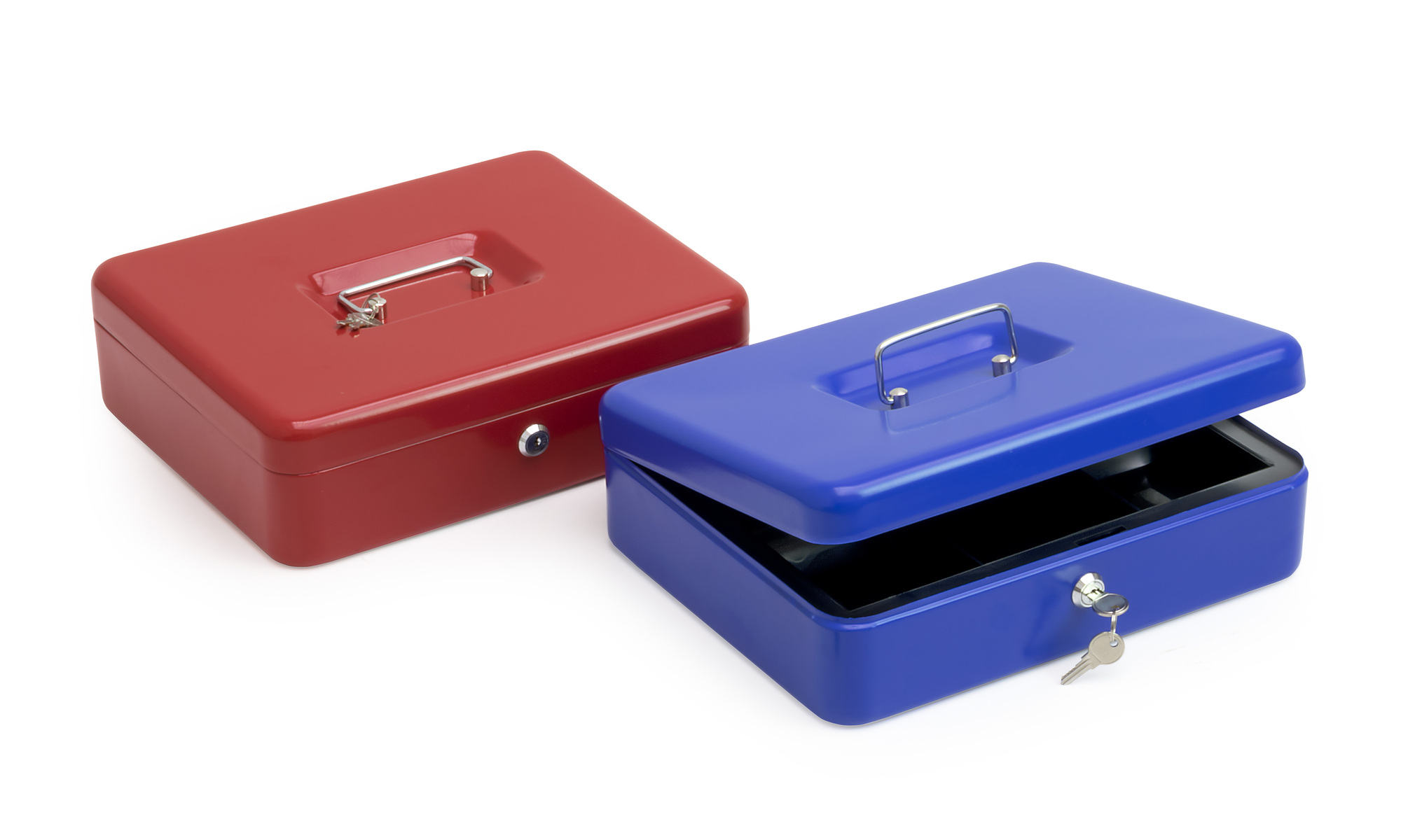 Uzamykateľné pokladničky z ocelového plechu pre bezpečné uloženie bankoviek, mincí a iných cenností. Komfortná rúčka…