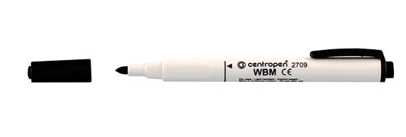 Popisovače na biele tabule Centropen 2709 valcový, Čierna, 1 ks, stierateľný