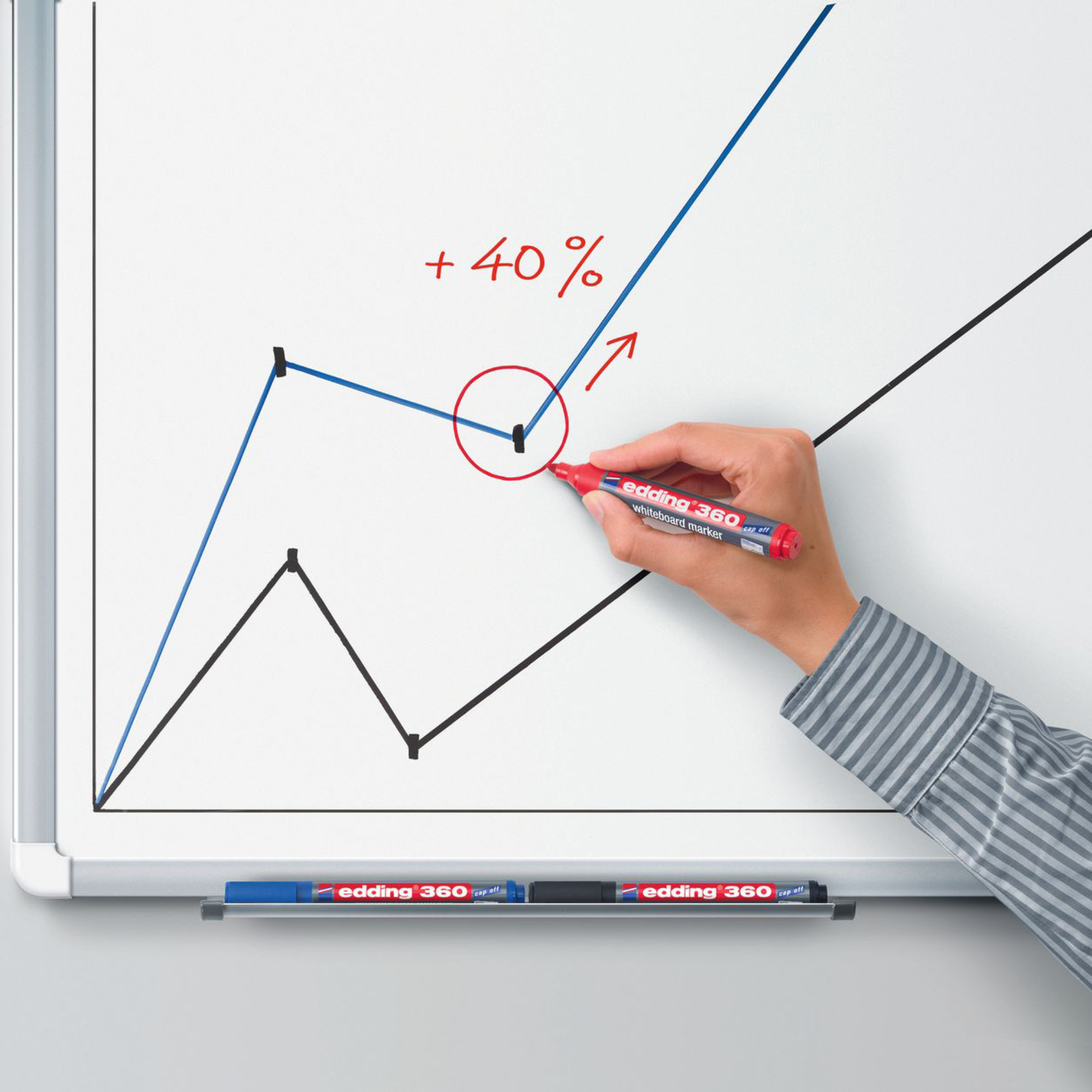 Popisovač edding 360 na biele tabule a taktiež na flipchartové tabule. Písmo je možné zasucha zotrieť prakticky zo…