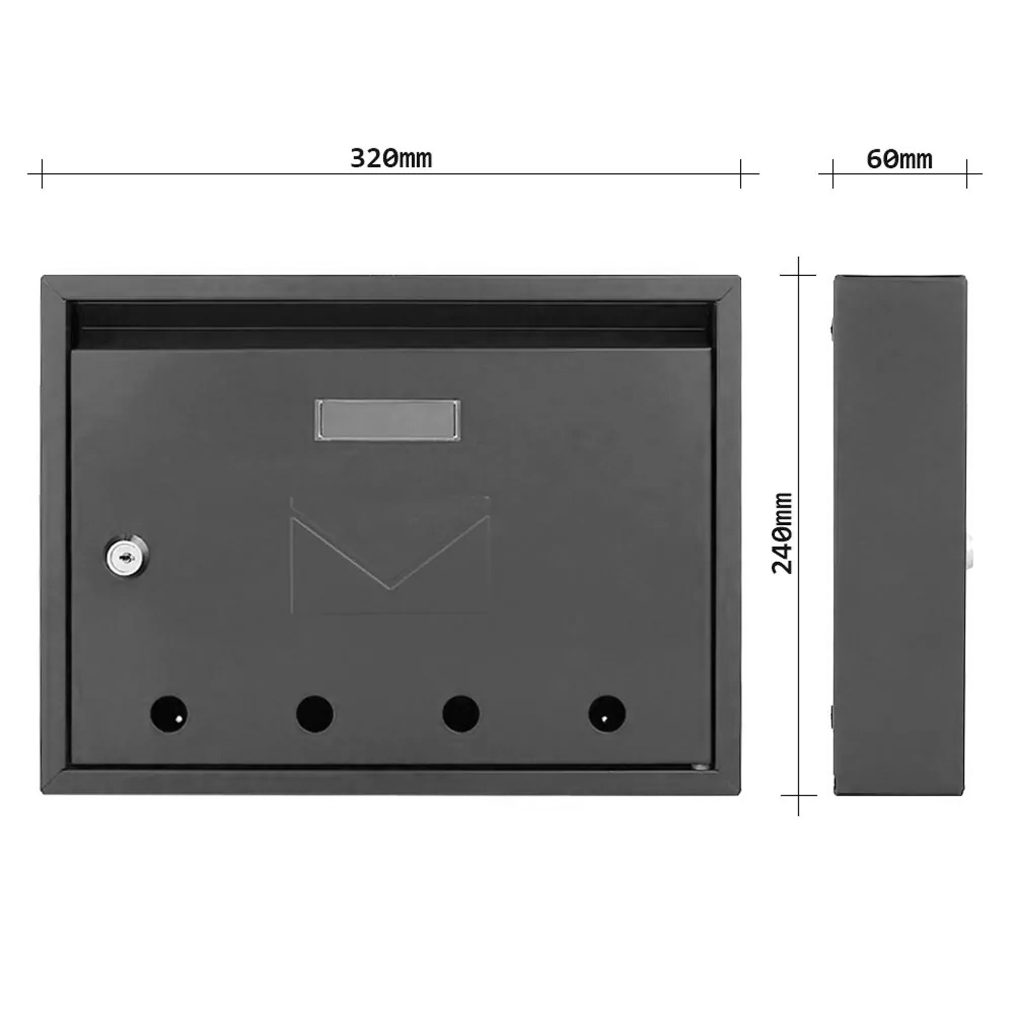 Poštová schránka s otvorom aj pre zadný vhod. Je vyrobená z pozinkovaného plechu. Vhodná aj do vonkajšieho prostredia. Cylindrická zámka, ekologické balenie, 2 kľúče. Rozmery: 320 x 360 x 85 mm