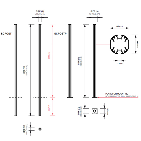 Stabilné oporné nohy z eloxovaného hliníka pr. 70mm. Určené pre vonkajšie vitríny typu CL alebo CT kotvené pomocou…