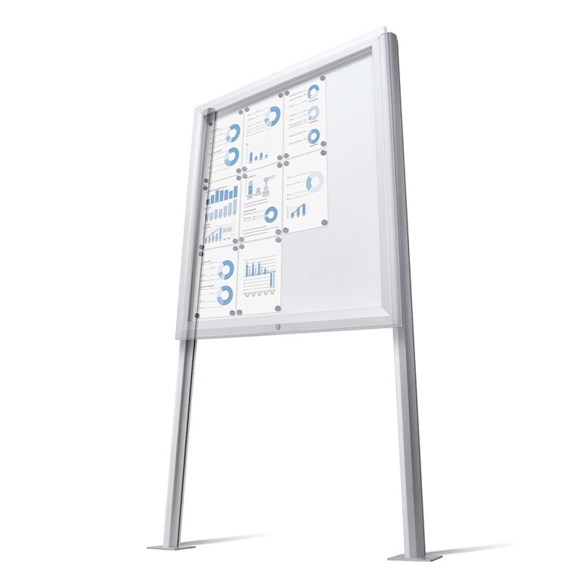 Stabilné oporné nohy z eloxovaného hliníka pr. 70mm. Určené pre vonkajšie vitríny typu CL alebo CT kotvené pomocou pätiek na prišróbovanie k podlahe. Montážna sada (uchytenie vitríny k nohám) nie je súčasťou balenia. Celková výška 195 cm.