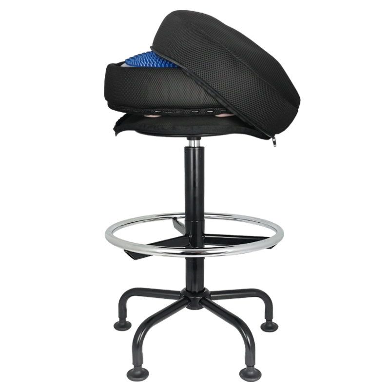 Zdravotná balančná stolička pre podperu státia s vyberateľným nafukovacím vankúšom k výškovo nastaviteľným stolom. Tento model FlexM3 je vybavená s podperou nôh a bol konštruovaný pre vyššie postavy ( doporučené nad 180cm ). Zabudovaný vzduchový balančný vankúš zabezpečuje zdravé sedenie. Stabilitu garantuje 5 kovových nôh, ktoré sú vybavené s klzákmi Praktická pomôcka pre rôzne polohy - keď nesedíte len sa opierate, alebo