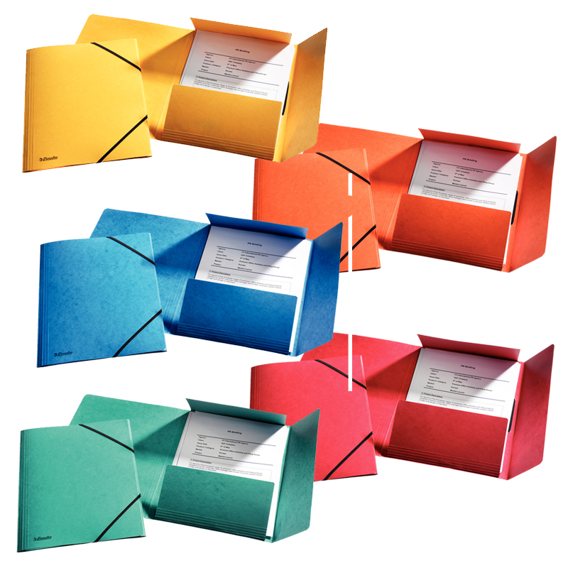 Prešpánové obaly s troma chlopňami a s gumičkou na dokumenty formátu A4. Hladký prešpán vo výrazných farbách, príjemný…