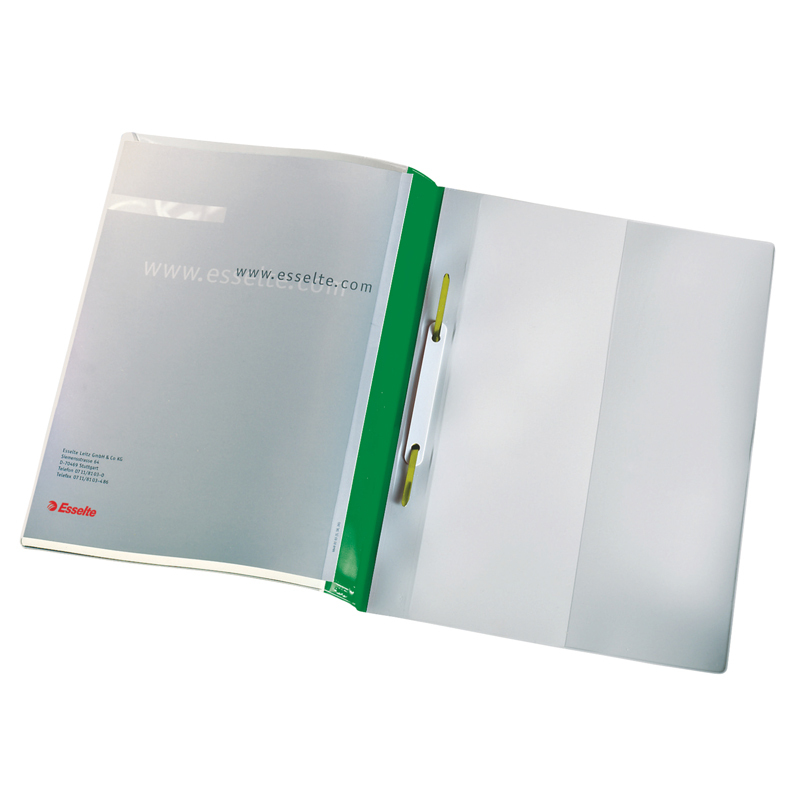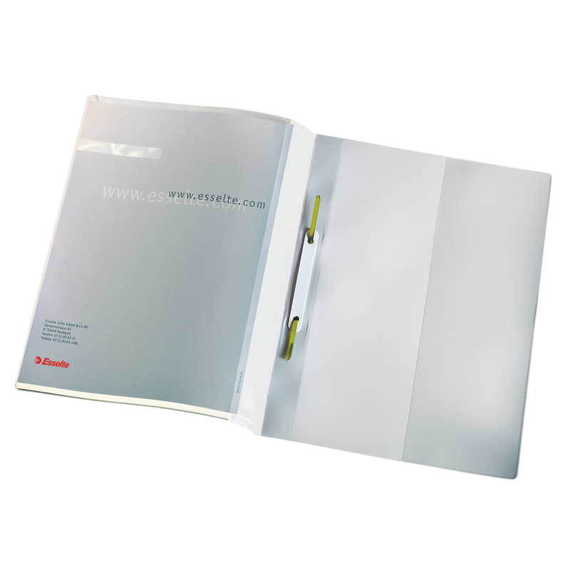 Rýchloviazač s multiperforáciou, eurodierovaním vo sviežej farbe Esselte VIVIDA. Je vhodná na zakladanie dierovaných dokumentov formátu A4. Predná, priehľadná strana rýchloviazača nezakrýva titulnú stránku vašej prezentácie, spisu, a pod. V založenom dokumente je možné listovať. Biely, zasúvací, papierový štítok pozdĺž chrbta slúži na označenie obsahu dosiek. Výrez umožňuje jednoduchú výmenu štítka. Rýchloviazač je vyrobený z kvalitného PVC a tým spoľahlivo chránia vaše dokumenty dlhú dobu, aj pri každodennom používaní. Kapacita: 160 listov formátu A4 (80 g/m2). Rozmery 310 x 235 mm. Farba biela. Balenie sáčok 10 ks