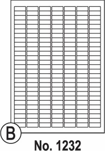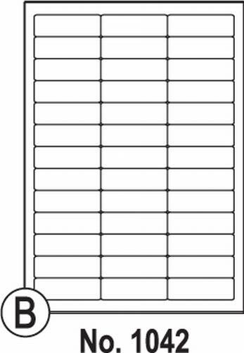 Etikety sú vyrobené zo samolepiacich papierov s ochranným okrajom so silným akrylátovým lepidlom. Špičková technológia výroby zaručuje bezprašnosť, ostré kontúry a vynikajúce podanie farieb. Najširšia ponuka rozmerov európskeho štandardu. Sú určené pre atramentové, laserové tlačiarne a kopírovacie zariadenia. Formát A4 Rozmery - 25,4x10 mm Balenie - 100 ks