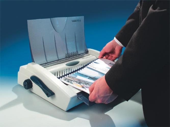 Viazač s elegantným designom, ktorý zaujme na prvý pohľad. Otvárateľný čírí kryt zastáva funkciu opierky, ale aj úkrytu viazacieho a dierovacieho mechanizmu. Nezávislá dierovacia a viazacia páka zrýchlí celý proces väzby dokumentov. Nastaviteľná hĺbka a perforácia a bočný doraz zaistí rovnomerné rezmiestnenie perforácie a väzby i objemnejších zväzkov. Posuvná mierka pomôže s volbou vhodného priemeru hrabeňa. Jednoduchšie vyprázdniteľný zásobník je samozrejmou súčasťou stroja.