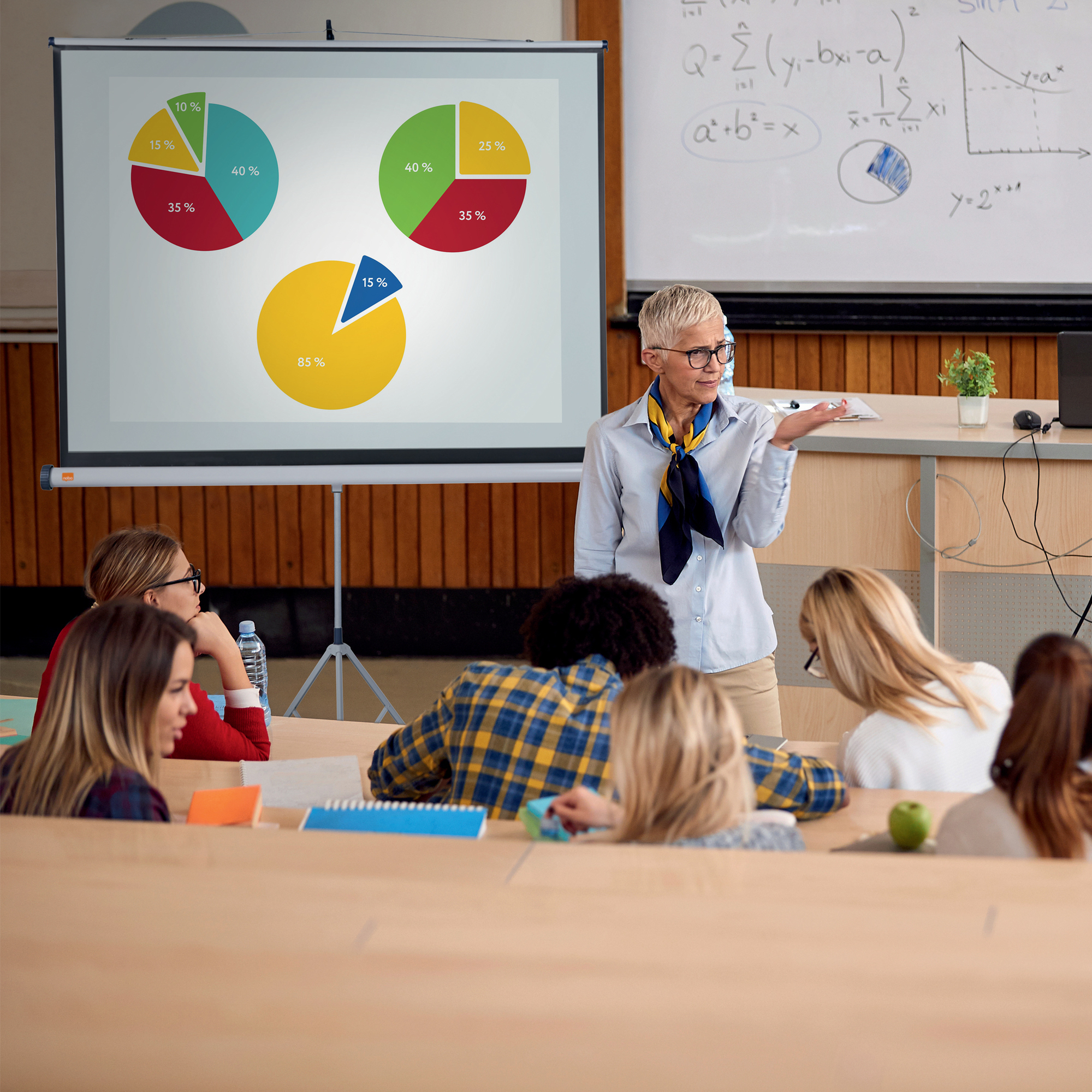 Žiarivý matne biely povrch plátna s čiernym okrajom zaručuje ostrý, podrobný obraz, ktorý zreteľne uvidia všetci…