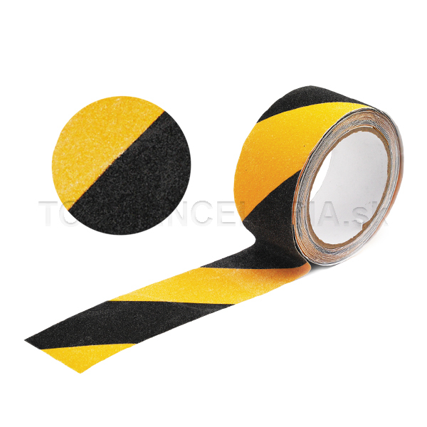 Protišmyková páska s z drsným povrchom na schody a všade tam kde hrozí riziko pošmiknutia. Je vhodná do interiérov a zakrytých priestorov v exteriéri. Páska sa vyznačuje veľkou odolnosťou a veľmi dlhou životnosťou. Má silnú samolepiacu vrstvu. Používa sa najmä na oblepovanie schodov. Široké uplatnenie nájde všade tam, kde je nebezpečenstvo šmyku. Farba žltá/čierna. Návin 5m x 50 mm.