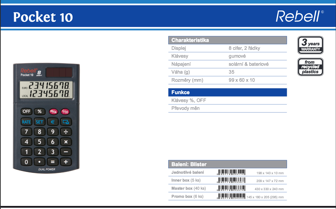 Rebell Pocket 10 vrecková kalkulačka s dvojriadkovým displejom