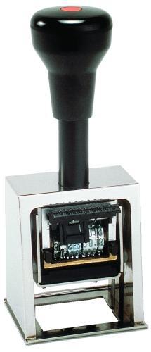Dátumová pečiatka s textovou doskou. poniklovaná kovová kostra vysokého lesku, Tlačové kolieska zo špeciálnej zliatiny liate pod tlakom. Nastavenie dátumu pomocou páčky. Typ písma blok. Mosadzná textová doska rozmerov 35x20mm, váha cca 330 g.