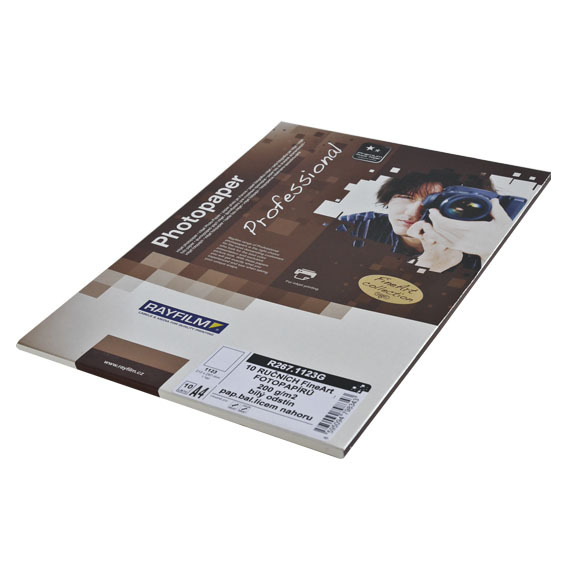 Ručný krémový ink-jet fotopapier pre umeleckú tlač fotografií. 100% bavlnený papier je vyrábaný klasickou technológiou bez bielidiel a chemických látok Ručný fotopapier FineArt je dostupný v hrúbke 0,38 mm. Ohľadom na charakter výroby ručného papiera nie je možné garantovať presný rozmer A4.