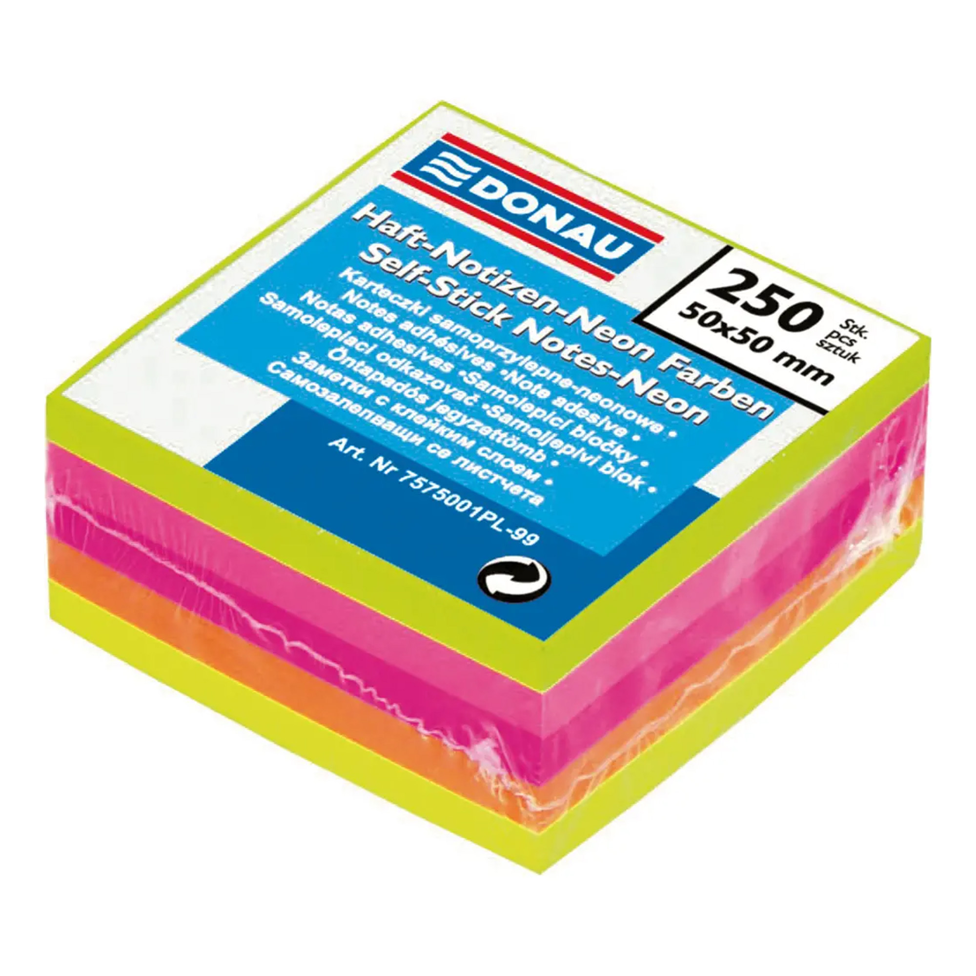 Samolepiace lístky kocka – 50 × 50 mm, 250 listov, neónové farby