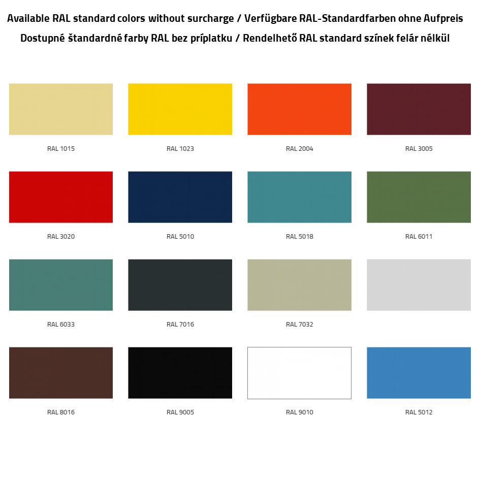 Kovová zváraná skriňa z kvalitného oceľového plechu. Povrchová úprava šedou práškovou farbou RAL 7035. Skriňa je štandardne vybavená 4 policami, ktoré sú prestaviteľné. Uzamykanie cylindrickým zámkom s rozvorovým mechanizmom.