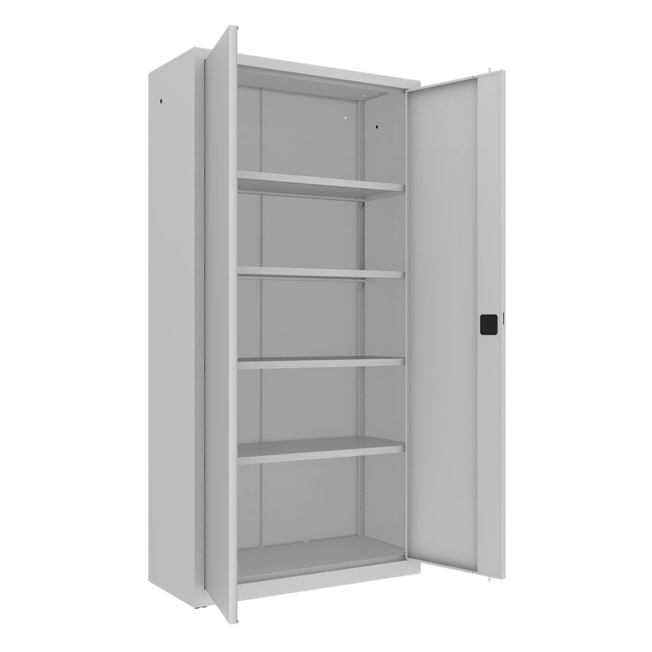 Kovová zváraná skriňa na všestranné použitie. Univerzálna oceľová skriňa je vyrobená z kvalitného plechu. Povrchová úprava šedou práškovou farbou RAL 7035. Skriňa je štandardne vybavená 4 policami. Uzamykanie cylindrickým zámkom s dvojbodovým rozvorovým mechanizmom.Vďaka zváraného korpusu skriňa má zaručenú stabilitu, dvere sa ľahko zatvárajú. Zváraná plechová skriňa nemá žiadne výkyvy, Tieto špecifiká ako stabilita u skladaných skríň sú neporovnateľne horšie, preto ich v našej ponuke ani nenájdete.