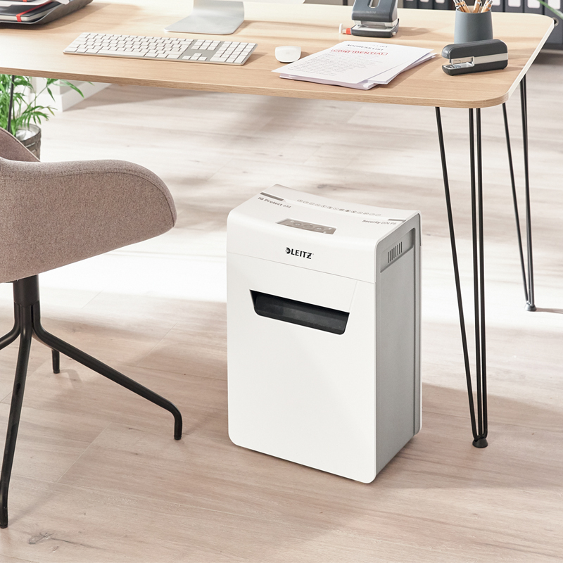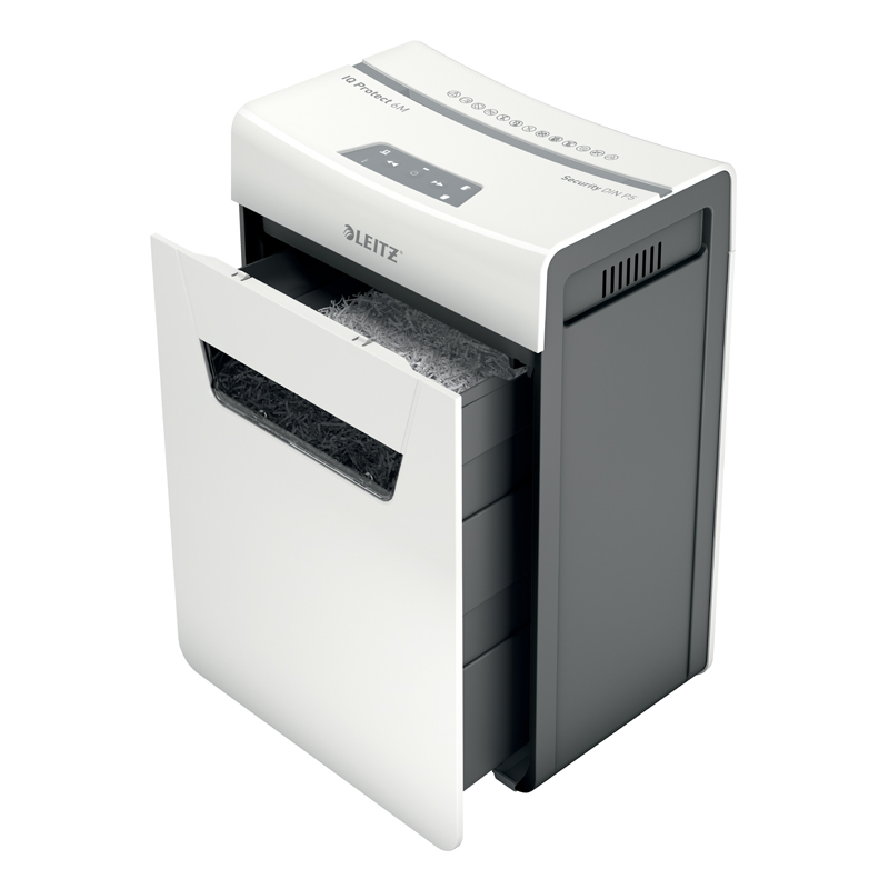 Mimoriadne tichá prevádzka – pre pokojné pracovné prostredie. Nový štýlový osobný skartovač značky Leitz. Kompaktná veľkosť pre jednoduché umiestnenie v domácej kancelárii. Skartuje až 10 hárkov A4 naraz do veľkého koša s objemom 23 l. Ľahko vysypateľný kôš s kapacitou 23 l – pojme až 225 hárkov, kým sa musí vysypať. Jednoduché ovládanie pomocou dotykových ovládacích prvkov. Vysoké zabezpečenie skartovaných dokumentov na úrovni stupňa utajenia DIN P4. Technológia proti zaseknutiu papiera pre bezproblémovú skartáciu – automaticky zastaví a spustí spätný chod pri vložení príliš veľkého množstva papiera. Skartovací cyklus až 6 minút – ideálne na občasné skartovanie. LED dióda signalizuje prehriatie prístroja. (čas chladnutia 60min). Záruka 2 + 1 rok – predĺženie záruky po registrácii prístroja. Rozmery 356 x 423 x 238mm.