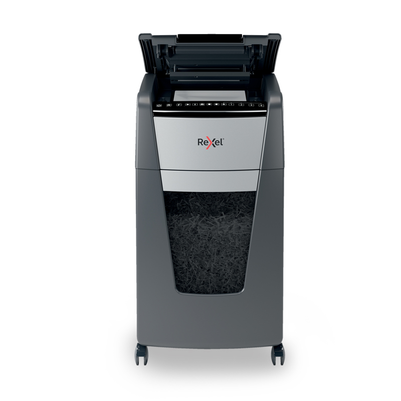 Plnoautomatická skartovačka na papier s mikrorezom DIN P-5 ( 2×15mm) od firmy Leitz s funkciou automatického podávania na 600 hárkov A4, otvor na manuálne plnenie až po 10 listoch 80 g/m2. Je veľmy inteligentná, potichu pracuje sama. Stačí vložíť stoh papiera (vrátane kancelárskych sponiek a sponiek do zošívačky), zatvorit veko a môžete ísť za svojou robotou. Dotykové ovládanie – jednoduché a intuitívne na ľahké obsluhovanie, so zamykaním pomocou PIN kódu pre maximálne utajenie a bezpečnosť. Má jedinečne čistú vyprázdňovaciu funkciu (rezací mechanizmus obráti chod po každom použití) na zabránenie zapadnutia skartovaného papiera za kôš pri jeho vysúvaní. Infračervený snímač plného koša a pri jeho naplnení na 80 % upozornenie na nutnosť vyprázdnenia, aby sa predišlo vzniku neporiadku. Technológia proti zaseknutiu papiera na nepretržitú skartáciu – pri vložení príliš veľkého množstva papiera sa automaticky zastaví a vysunie papier späť. Nepretržitý chod počas 240 minút, umožňujúci skartáciu plnej komory naraz, ECO režim spánku sa aktivuje po 3 minútach nečinnosti. Objemný 110l odnímateľný kôš, umožňujúci skartáciu plnej komory. Skartuje aj kreditné karty, kancelárske sponky a sponky do zošívačiek. Záruka 2 + 1 rok (aj na rezací mechanizmus) – zaregistrujte sa a získate rok navyše. Rozmery 675 x 1130 x 750 mm. Váha 45,5kg