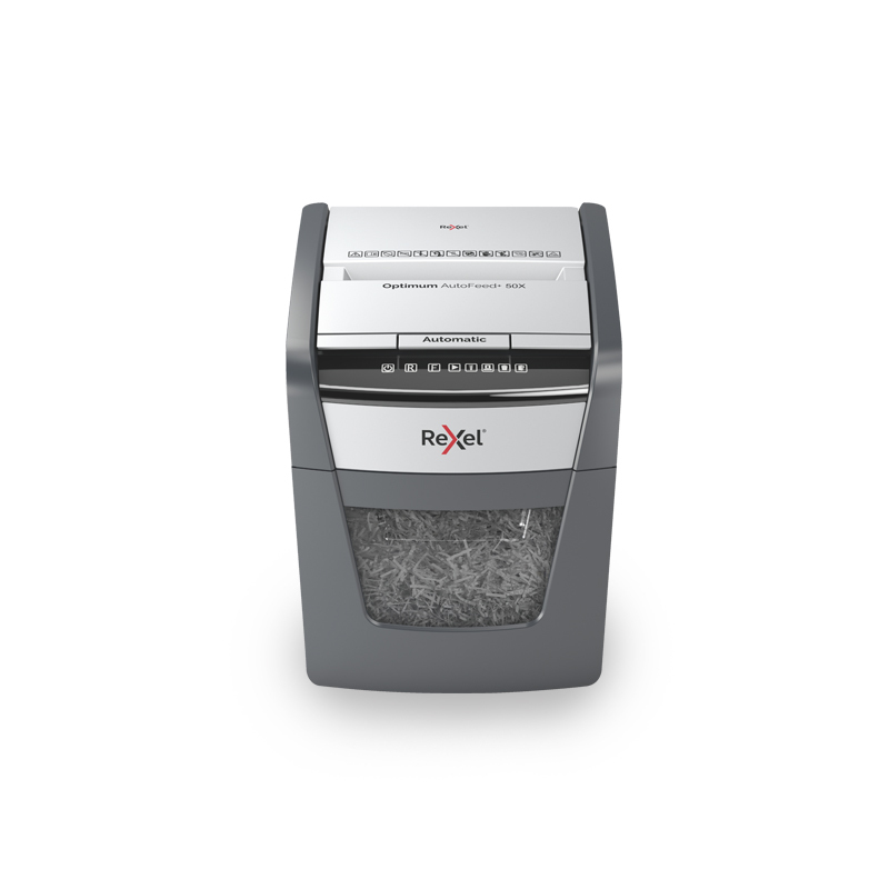 Skartovačka Optimum AutoFeed 50X s krížovým rezom 4 x 28mm automaticky skartuje až 50 hárkov papiera A4 (80 g/m2). Táto automatická skartovačka je vďaka kompaktnému 20l košu ideálna aj na použitie v domácnosti alebo v domácej kancelárii. Nie je potrebné ručne vkladať papier alebo vopred odstraňovať svorky a kancelárske sponky, táto automatická skartovačka papiera urobí všetko za vás. Doba nepretržitej prevádzky 10 minút s chladiacim ventilátorom. Veľkosť útržkov: 4 × 28 mm. Kapacita hárkov: Automatické podávanie 50 hárkov (max.). Otvor na manuálne plnenie až po 6 hárkoch (80 g/m2). Mimoriadne tichá prevádzka 55 dB. Infračervený snímač plného koša. Objem koša: 20 l. Hmotnosť 13kg. Rozmer skartovačky 363 x 405 x 430mm.