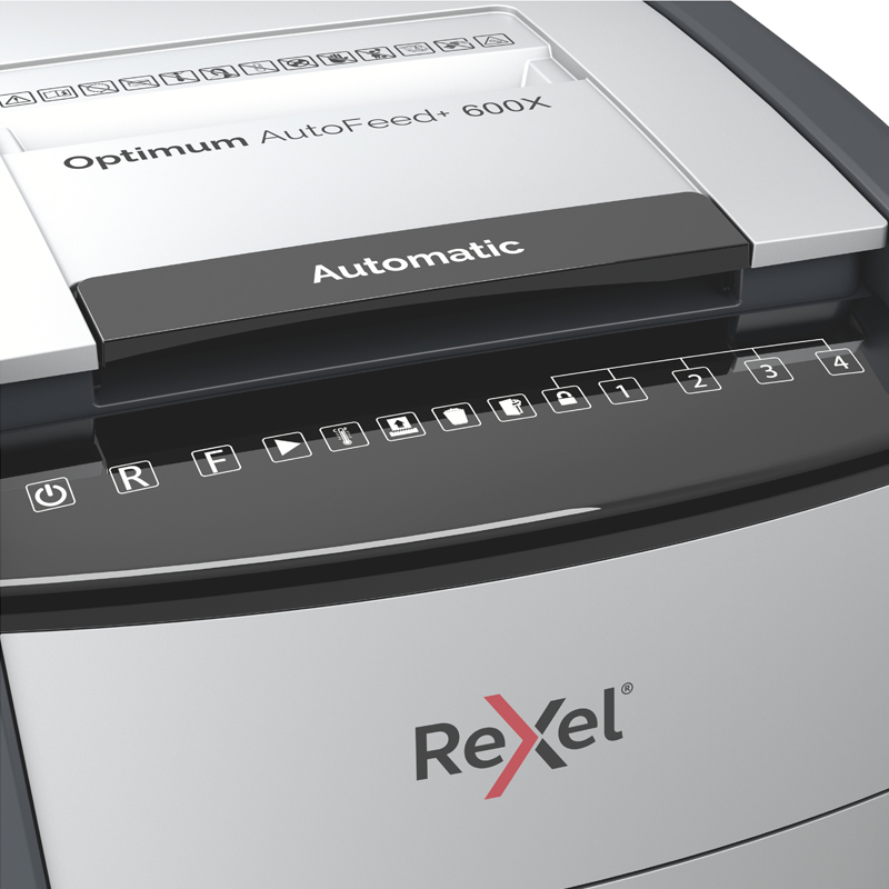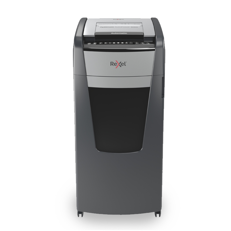Skartovačka Optimum AutoFeed 600X s krížovým rezom 4 x 36mm automaticky skartuje až 600 hárkov papiera A4 (80 g/m2). Dotykový ovládací panel so zamykaním pomocou PIN kódu na maximálne utajenie a bezpečnosť. Tento stroj na skartovanie s automatickým podávaním je sofistikovaný kancelársky drvič s výsuvným košom s objemom 110L. Nie je potrebné ručne vkladať papier alebo vopred odstraňovať svorky a kancelárske sponky, táto automatická skartovačka papiera urobí všetko za vás. Doba nepretržitej prevádzky 240 minút s chladiacim ventilátorom. Veľkosť útržkov: 4 × 36 mm. Kapacita hárkov: Automatické podávanie 600 hárkov (max.). Otvor na manuálne plnenie až do 15 hárkov (80 g/m2). Mimoriadne tichá prevádzka 55 dB. Infračervený snímač plného koša. Objem koša: 110 l. Hmotnosť 37kg. Rozmery 465 x 735 x 490mm.