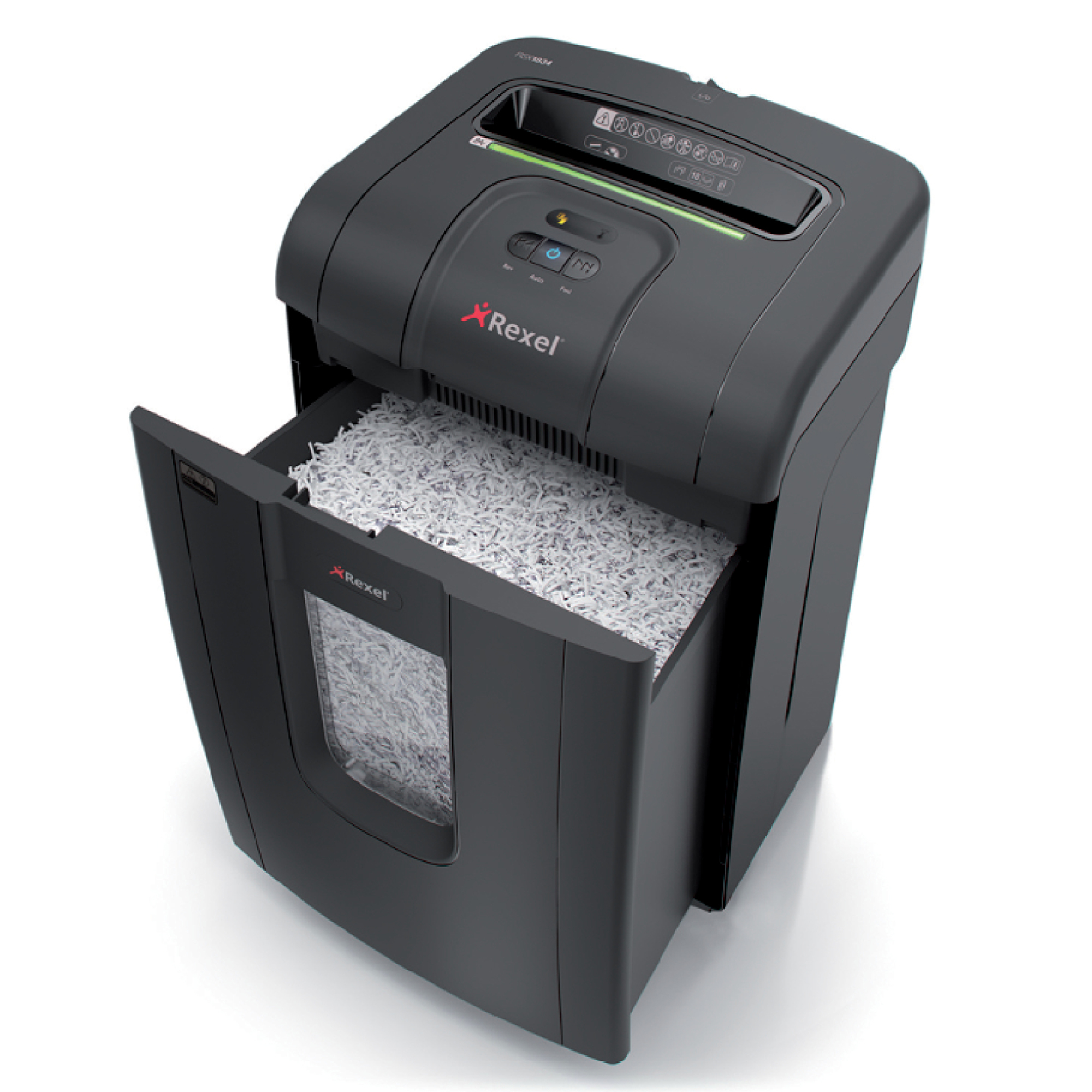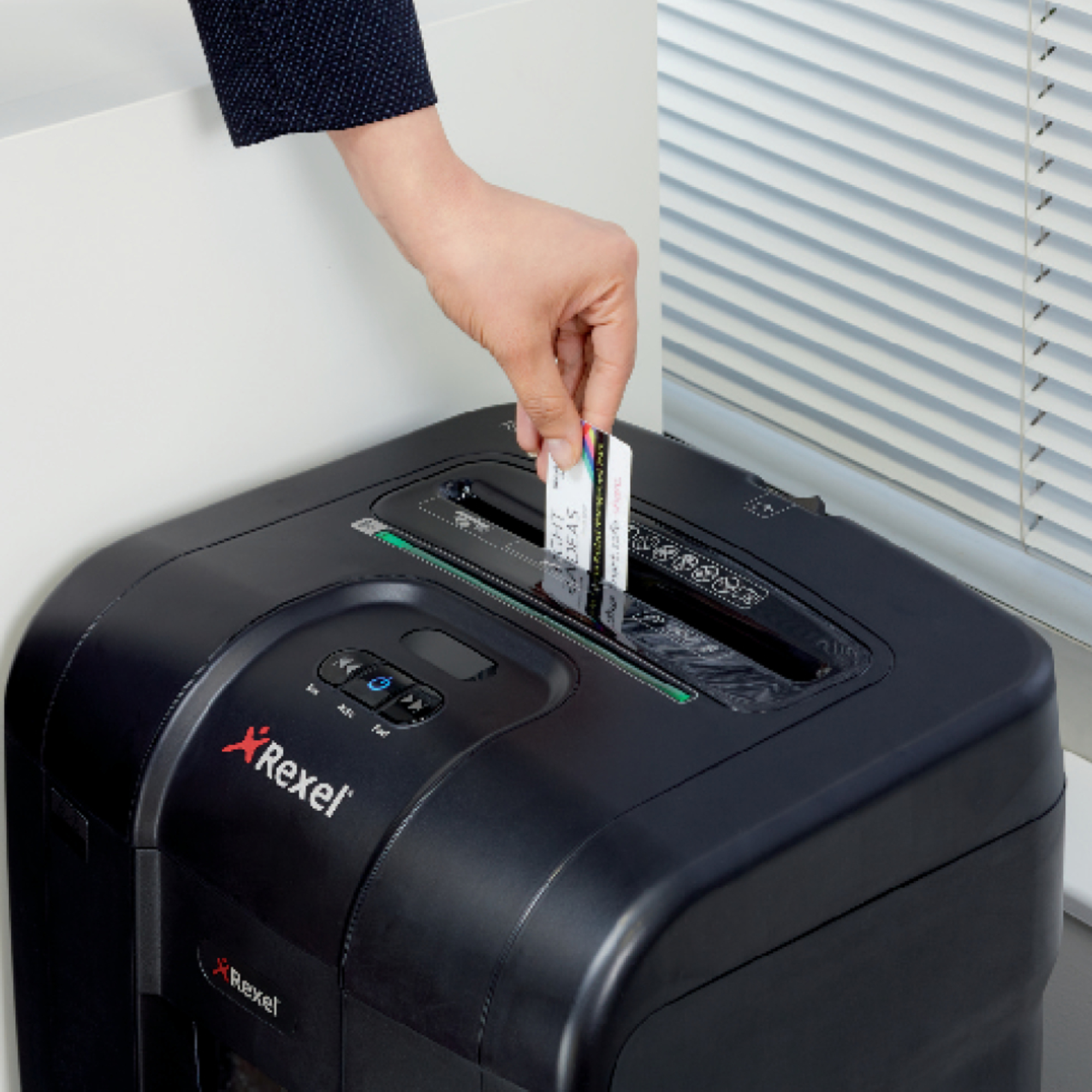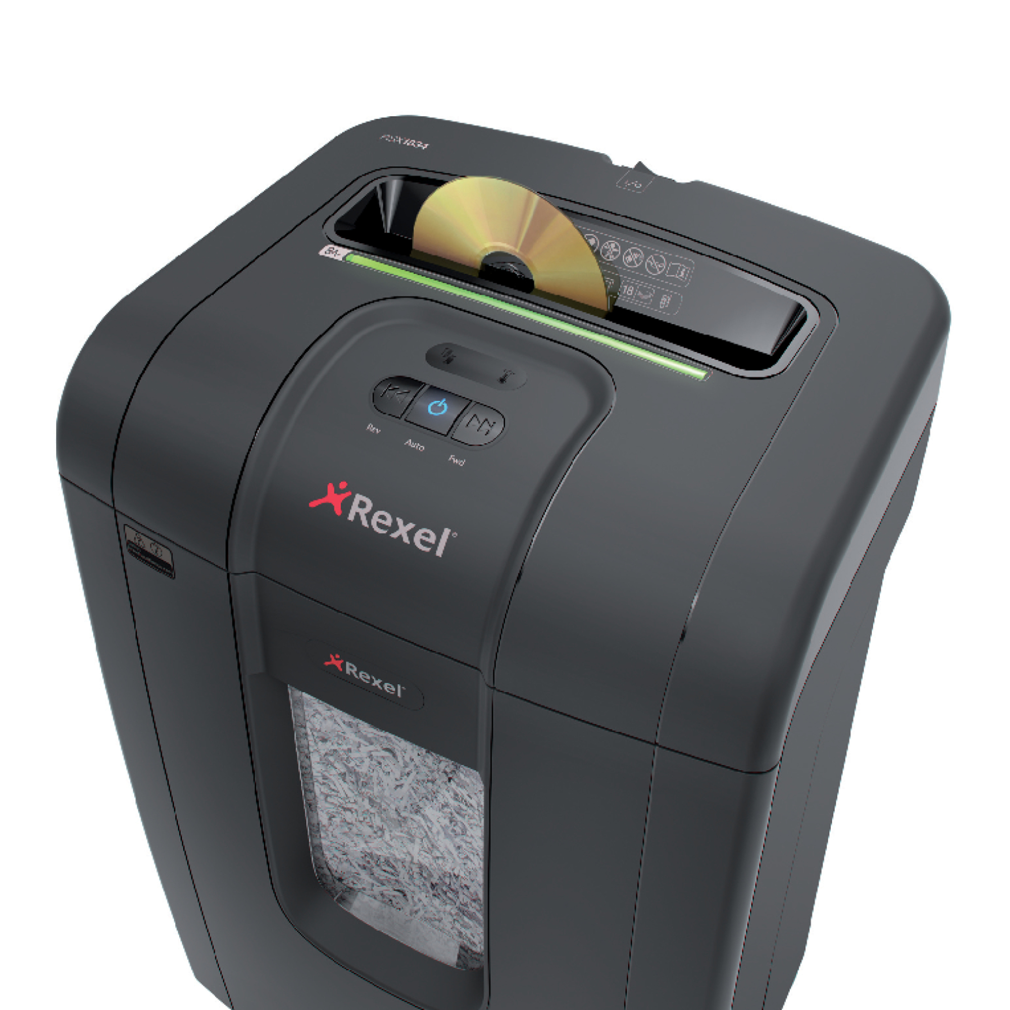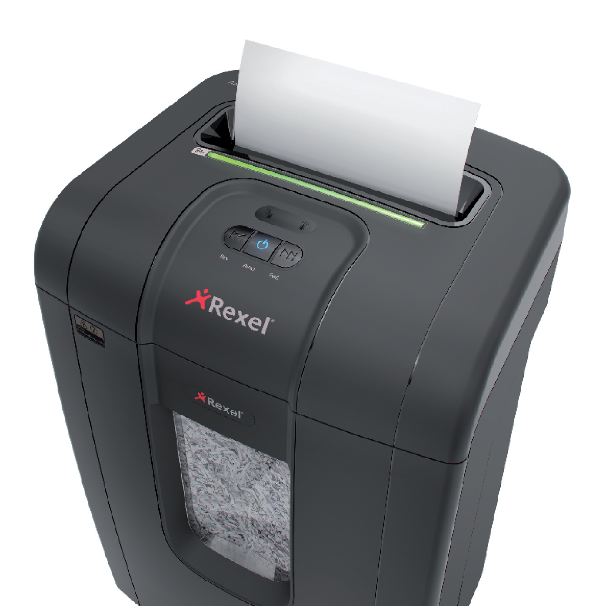 Výkonná skartovačka veľmi tichým chodom, len 65db. Naraz dokáže skartovať až 18 listov 80g papiera s priečnym rezom 4 x 40 mm. Skartuje zabudnuté sponky zo zošívačiek a cez špeciálne otvory aj kreditné karty a CD nosiče. Má zabudovaný senzor pre automatické spustenie. Tlačidlo pre nepretržitú skartáciu - (nože sa točia naprázdno). Táto funkcia sa využíva najme pri skartovaní objemnejších materiálov - netreba čakať kým senzor spustí skartovanie. Funkcia s dvojfarebným svetlom STOP/GO signalizuje a zároveň kontroluje množstvo vkladaného papiera. Spätný chod pri preplnený odpadovej nádoby 34 litrov. Záruka proti zlomeniu nožov 10 rokov. Rozmery skartovacieho zariadenia 610 x 398 x 320 mm. Váha 15,3 kg.