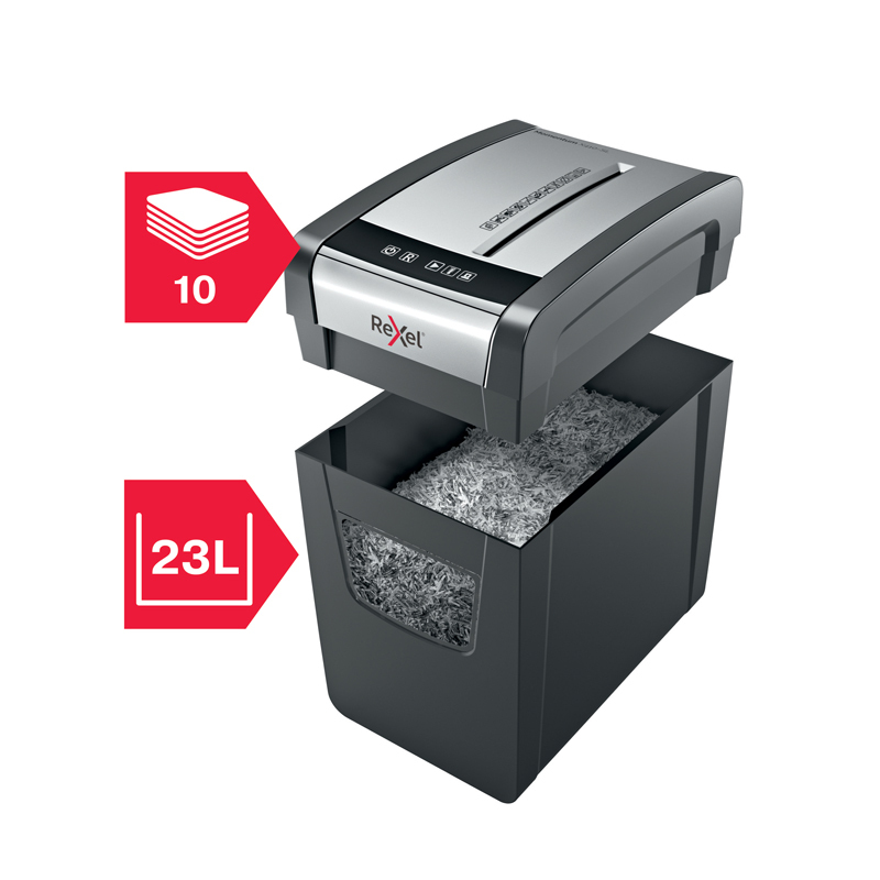 Nezastaviteľný skartovač! Rexel Momentum X410-SL s úzkym dizajnom skartuje až 10 hárkov naraz a vydrží v nepretržitom chode 6 minút. Tichý chod pre minimálne vyrušovanie okolia. Technológia proti zaseknutiu papiera garantuje neprerušované skartovanie. Krížový rez na úrovni zabezpečenia P4 reže papier na časti s veľkosťou 4 × 28 mm. Technológia Anti-jam automaticky zastaví a spustí spätný chod pri vložení príliš veľkého množstva papiera. Dotykové ovládanie pre jednoduché a intuitívne ovládanie. Objemný kôš s kapacitou 23 l pojme 225 hárkov A4. Váha 6,5kg. Rozmery 255 x 375 x 370 (mm)