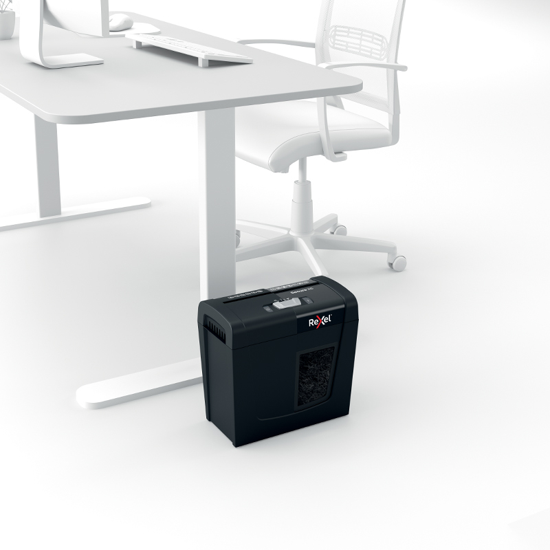 Skartovačka Secure 1EU skartuje až 5 hárkov papiera A4 (80 g/m2), vložených naraz do vstupného otvoru na ručné podávanie, na dieliky s prúžkovaným rezom P-2 (6 mm). Táto malá skartovačka je dokonalá na použitie v domácej kancelárii alebo ako osobná skartovačka, ktorá sa pohodlne zmestí pod stôl vďaka svojim kompaktným a výhodným rozmerom. S košom s objemom 10L (75 hárkov A4). Tichá skartácia