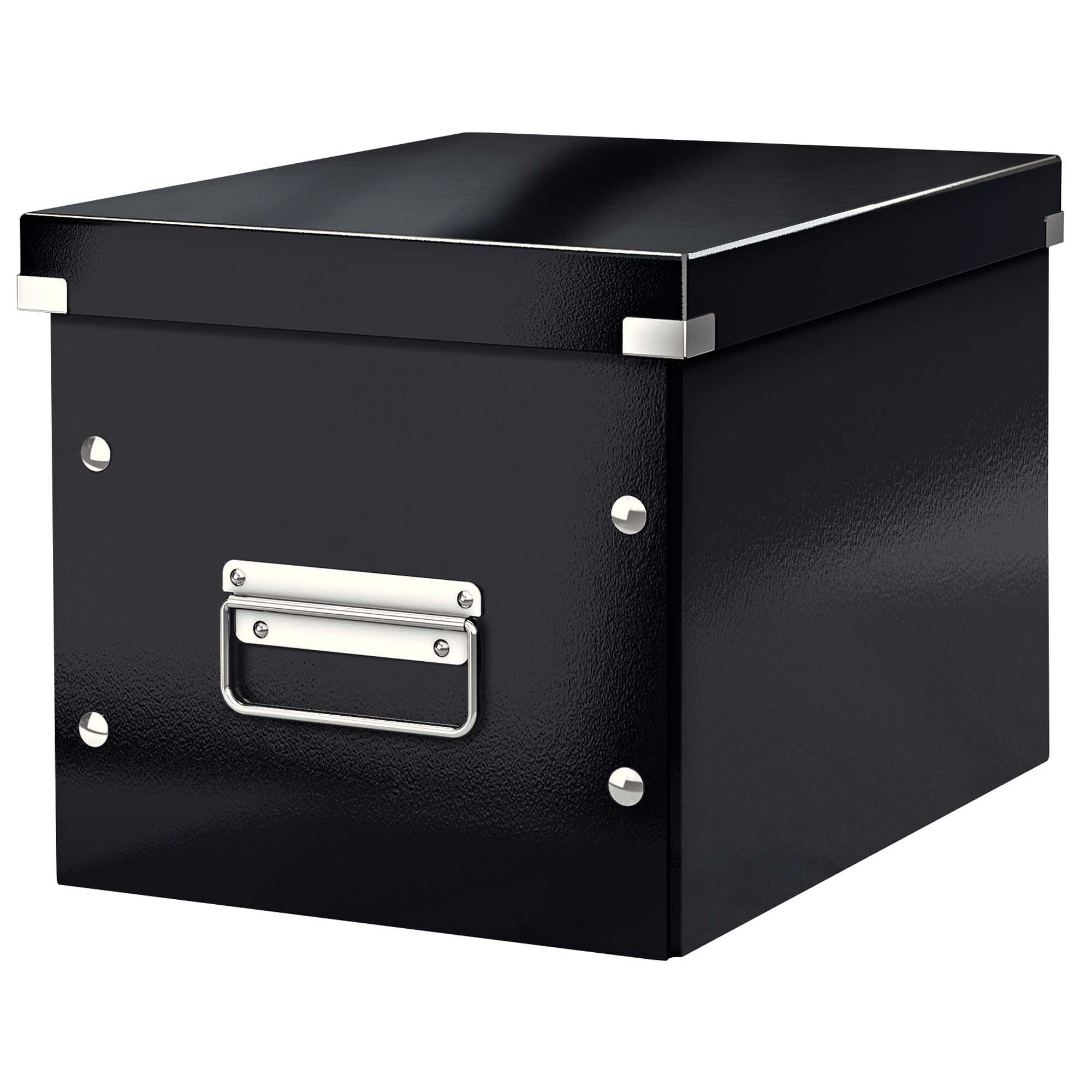 Atraktívna čierna škatuľa v tvare kocky na prehľadné ukladanie vyšších, alebo objemnejších predmetov. Veľkostne dokonale zapadne do polic a knižníc (napr. Ikea Billy). Má pevné kovové držadlá na pohodlnú manipuláciu a prenášanie. Kvalitné kovové rámčeky na popis obsahu s kontrastnými bielymi štítkami. Moderný dizajn, ktorý sa vyníma v každej kancelárii. Dodajte svojmu pracovnému miestu alebo domácnosti farbu a skombinujte škatuľu s ostatnými kancelárskymi výrobkami z radu Leitz WOW. Vyrobené z hrubého kartónu s laminovaným povrchom a kovovými rohmi pre spoľahlivú ochranu. Lesklé PP vyhotovenie vytvára prvotriedny vzhľad škatule a umožňuje dlhodobé používanie a jednoduché utieranie prachu. Patentovaná konštrukcia zaručuje stohovateľnosť a vyššiu ochranu proti náhodnému rozloženiu škatule pri prenášaní ťažkých vecí. Premyslená skladacia konštrukcia na rýchle a jednoduché zloženie bez nutnosti použitia skrutiek. Možnosť opätovného rozloženia a uloženie do veka keď škatuľu práve nepotrebujete. Váha 0,87 kg. Rozmery 260 x 240 x 260 (mm).
