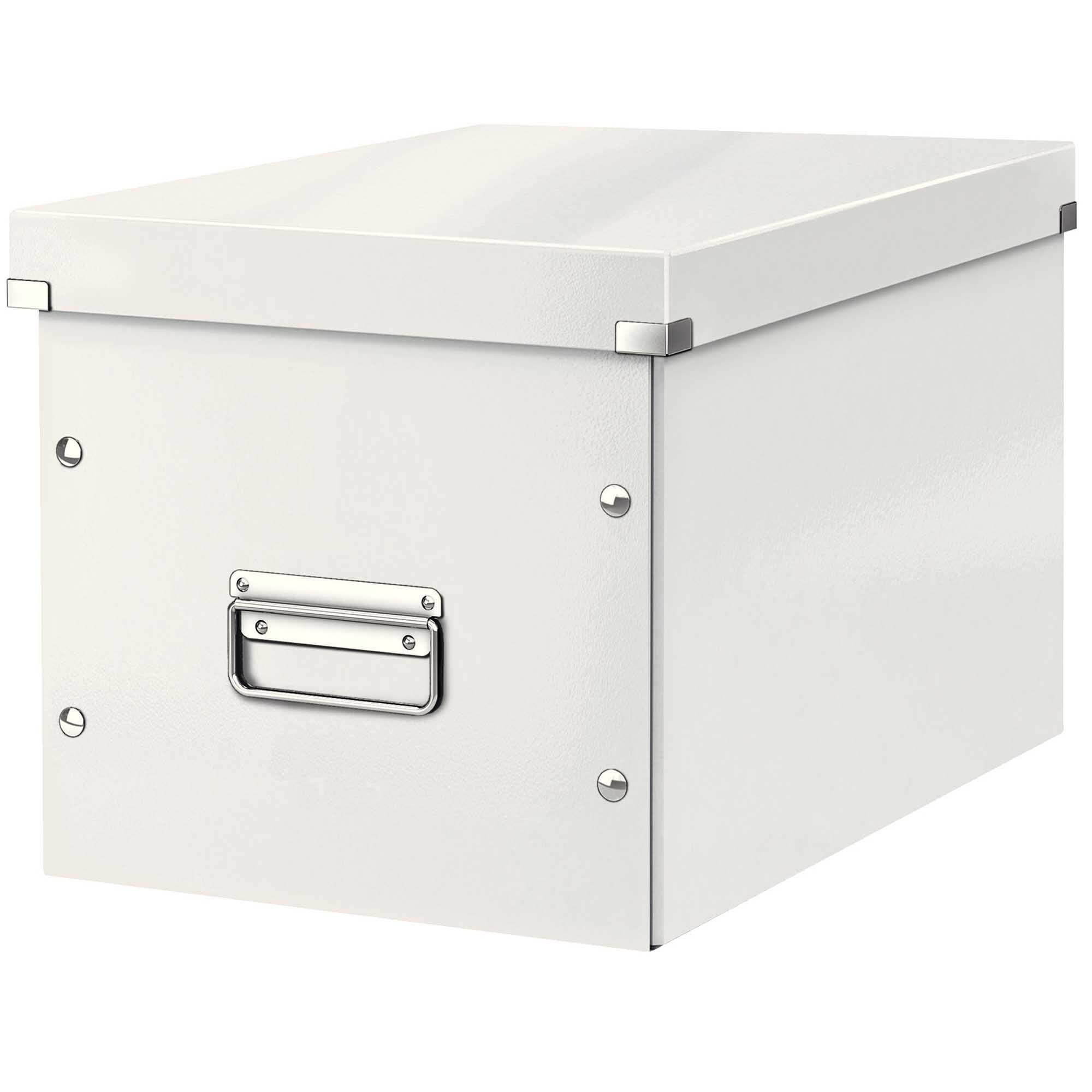 Atraktívna čierna škatuľa v tvare kocky na prehľadné ukladanie vyšších, alebo objemnejších predmetov. Veľkostne dokonale zapadne do polic a knižníc (napr. Ikea Billy). Má pevné kovové držadlá na pohodlnú manipuláciu a prenášanie. Kvalitné kovové rámčeky na popis obsahu s kontrastnými bielymi štítkami. Moderný dizajn, ktorý sa vyníma v každej kancelárii. Dodajte svojmu pracovnému miestu alebo domácnosti farbu a skombinujte škatuľu s ostatnými kancelárskymi výrobkami z radu Leitz WOW. Vyrobené z hrubého kartónu s laminovaným povrchom a kovovými rohmi pre spoľahlivú ochranu. Lesklé PP vyhotovenie vytvára prvotriedny vzhľad škatule a umožňuje dlhodobé používanie a jednoduché utieranie prachu. Patentovaná konštrukcia zaručuje stohovateľnosť a vyššiu ochranu proti náhodnému rozloženiu škatule pri prenášaní ťažkých vecí. Premyslená skladacia konštrukcia na rýchle a jednoduché zloženie bez nutnosti použitia skrutiek. Možnosť opätovného rozloženia a uloženie do veka keď škatuľu práve nepotrebujete. Váha 0,87 kg. Rozmery 260 x 240 x 260 (mm).
