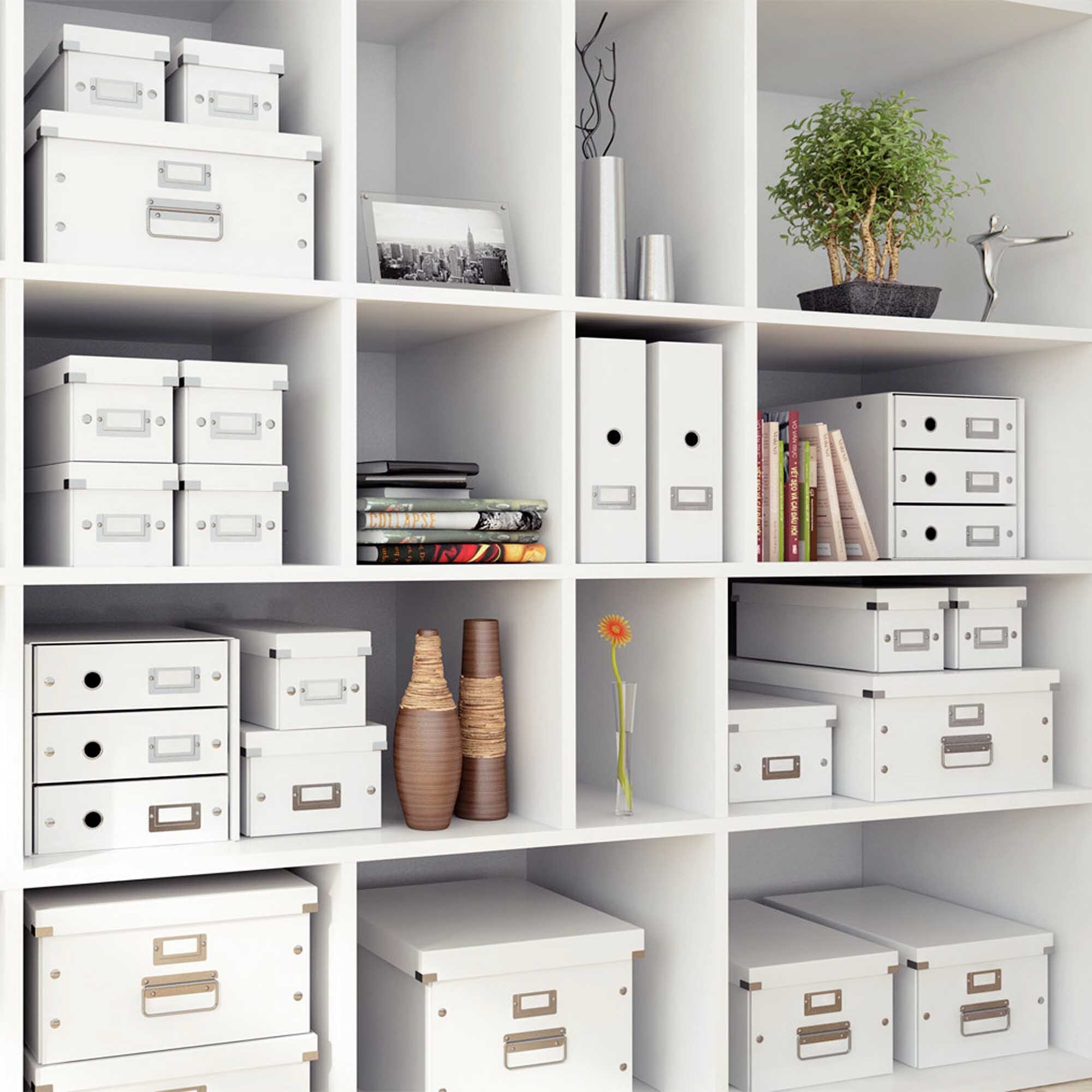 Stredne velká biela štýlová škatuľa na prehľadné ukladanie drobností. Lesklé PP vyhotovenie vytvára prvotriedny vzhľad škatule a umožňuje dlhodobé používanie a jednoduché utieranie prachu. Má kvalitné kovové rámčeky na popis obsahu s kontrastnými bielymi štítkami. Moderný dizajn, ktorý sa vyníma v každej kancelárii. Dodajte svojmu pracovnému miestu alebo domácnosti farbu a skombinujte škatuľu s ostatnými kancelárskymi výrobkami z radu Leitz WOW. Vyrobené z hrubého kartónu s laminovaným povrchom a kovovými rohmi pre spoľahlivú ochranu. Patentovaná konštrukcia zaručuje stohovateľnosť a vyššiu ochranu proti náhodnému rozloženiu škatule pri prenášaní ťažkých vecí. Premyslená skladacia konštrukcia na rýchle a jednoduché zloženie bez nutnosti použitia skrutiek. Možnosť opätovného rozloženia a uloženie do veka keď škatuľu práve nepotrebujete. Váha 0,57 kg. Rozmery 206 x 147 x 352 (mm).