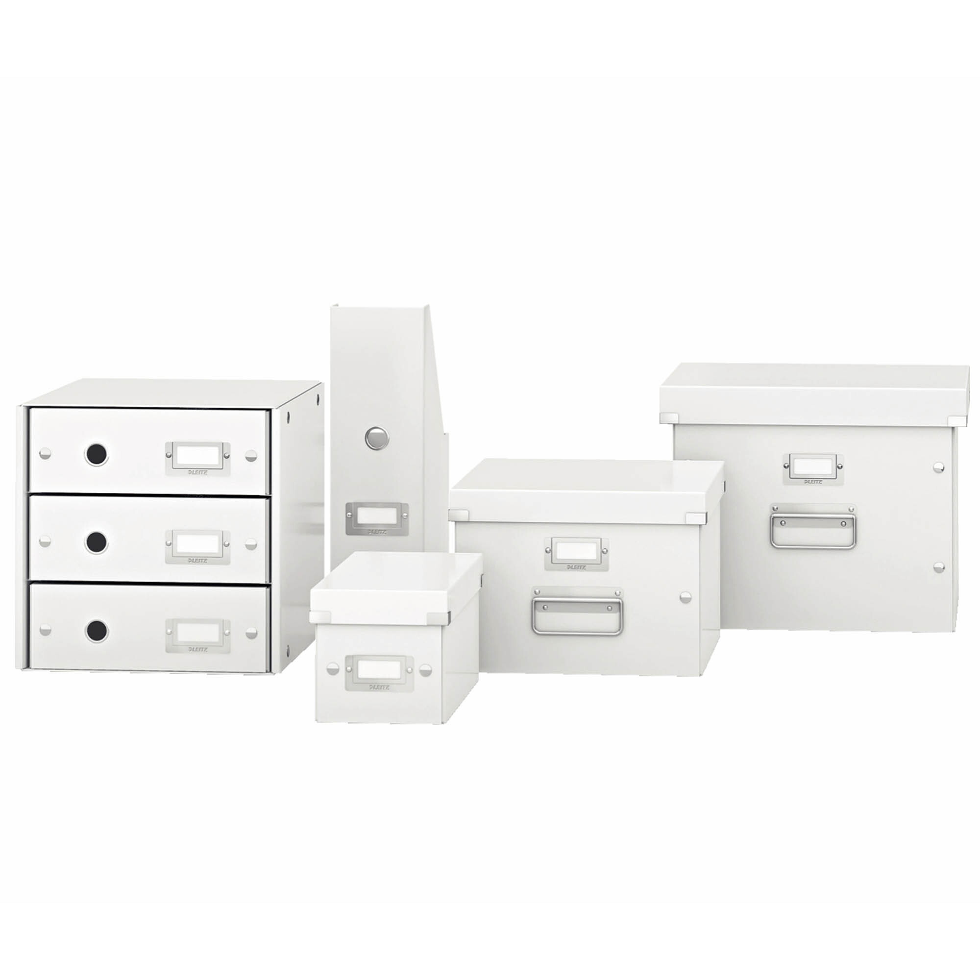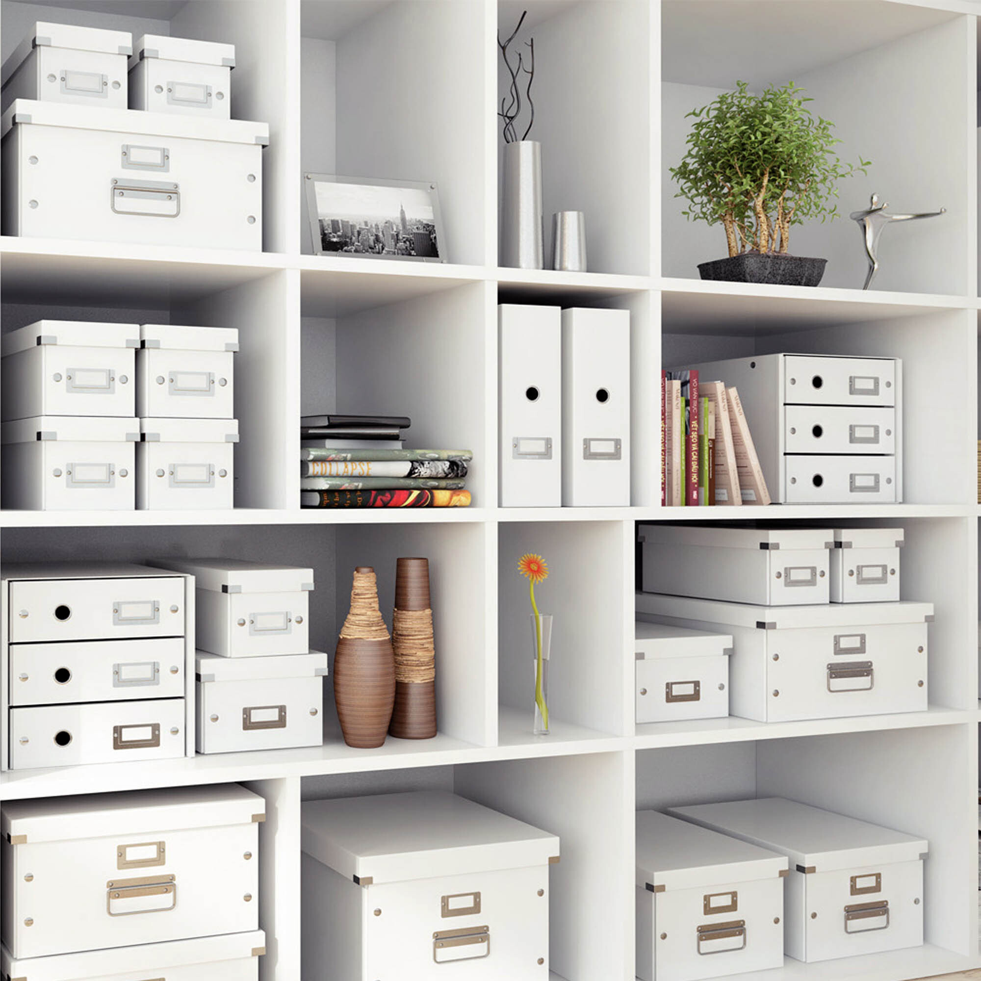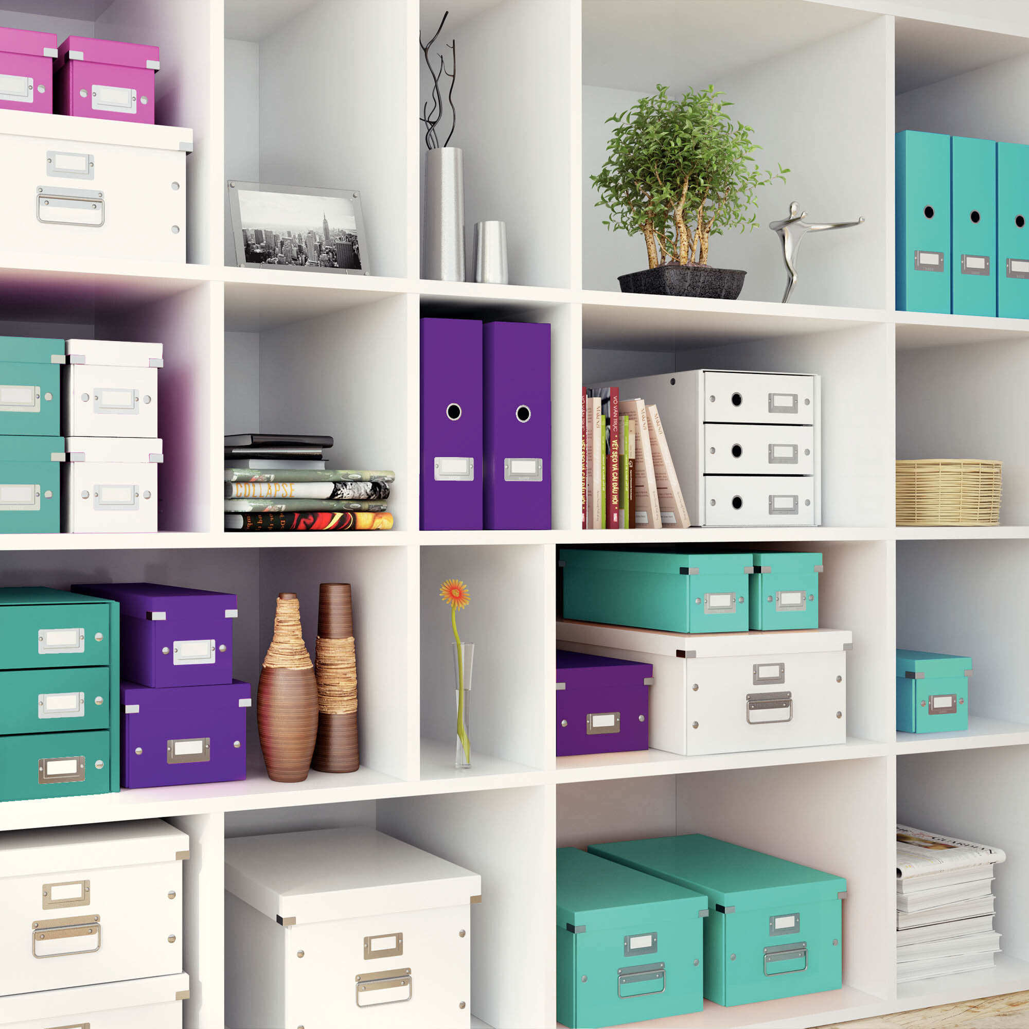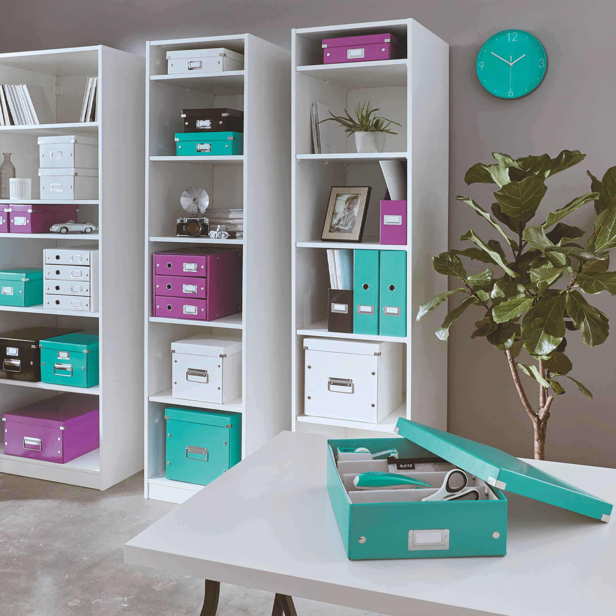 Univerzálna čierna štýlová škatuľa na prehľadné ukladanie dokumentov A4, alebo napr. na rozrobené štrikovanie.. Lesklé PP vyhotovenie vytvára prvotriedny vzhľad škatule a umožňuje dlhodobé používanie a jednoduché utieranie prachu. Má kvalitné kovové rámčeky na popis obsahu s kontrastnými bielymi štítkami. Moderný dizajn, ktorý sa vyníma v každej kancelárii. Dodajte svojmu pracovnému miestu alebo domácnosti farbu a skombinujte škatuľu s ostatnými kancelárskymi výrobkami z radu Leitz WOW. Vyrobené z hrubého kartónu s laminovaným povrchom a kovovými rohmi pre spoľahlivú ochranu. Má pevné kovové držadlá na pohodlnú manipuláciu a prenášanie. Patentovaná konštrukcia zaručuje stohovateľnosť a vyššiu ochranu proti náhodnému rozloženiu škatule pri prenášaní ťažkých vecí. Premyslená skladacia konštrukcia na rýchle a jednoduché zloženie bez nutnosti použitia skrutiek. Možnosť opätovného rozloženia a uloženie do veka keď škatuľu práve nepotrebujete. Váha 0,9 kg. Rozmery 281 x 200 x 370 (mm).