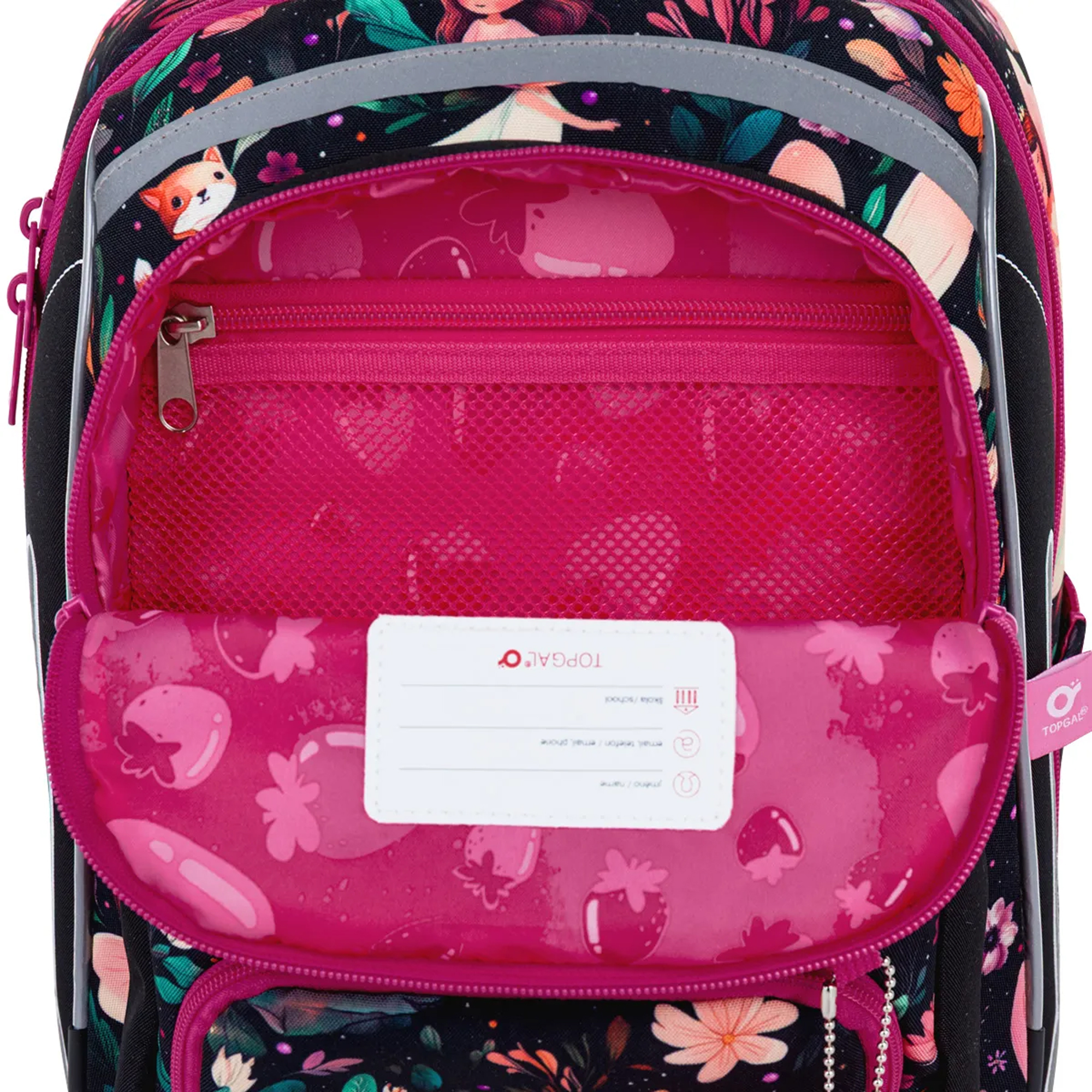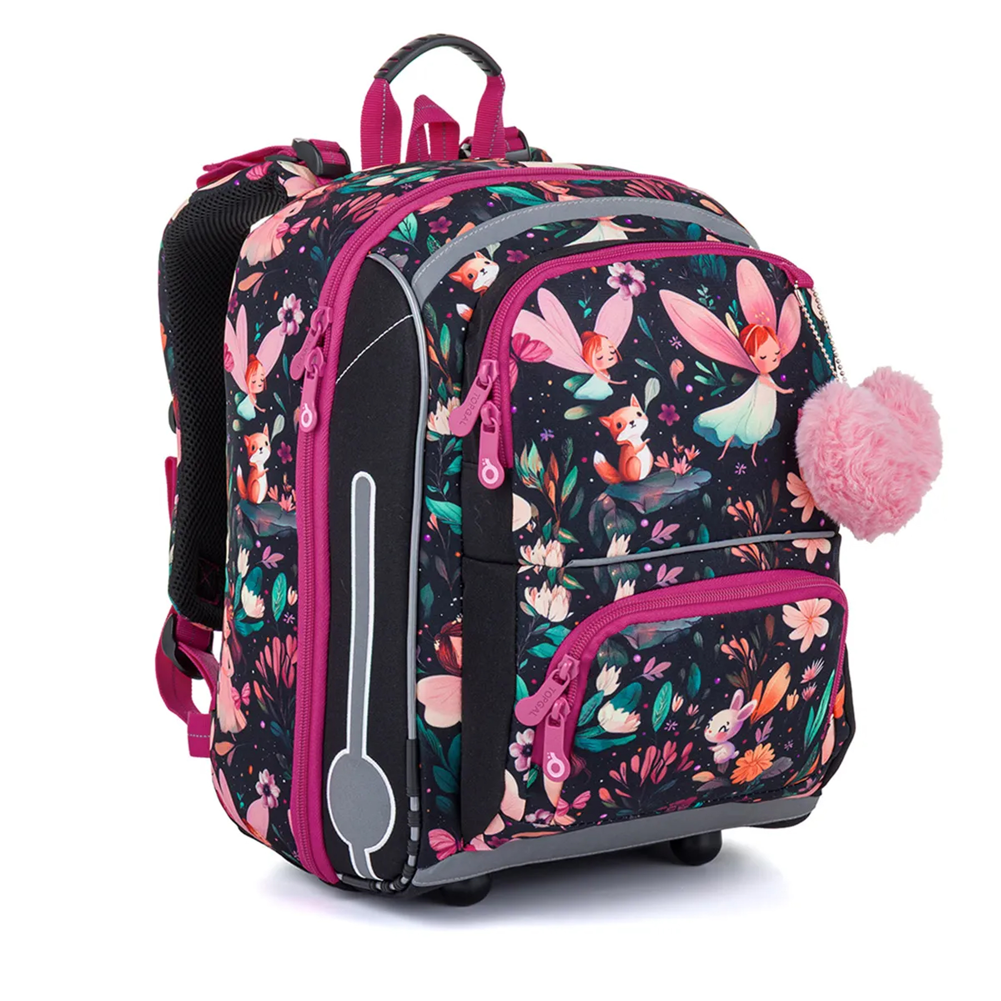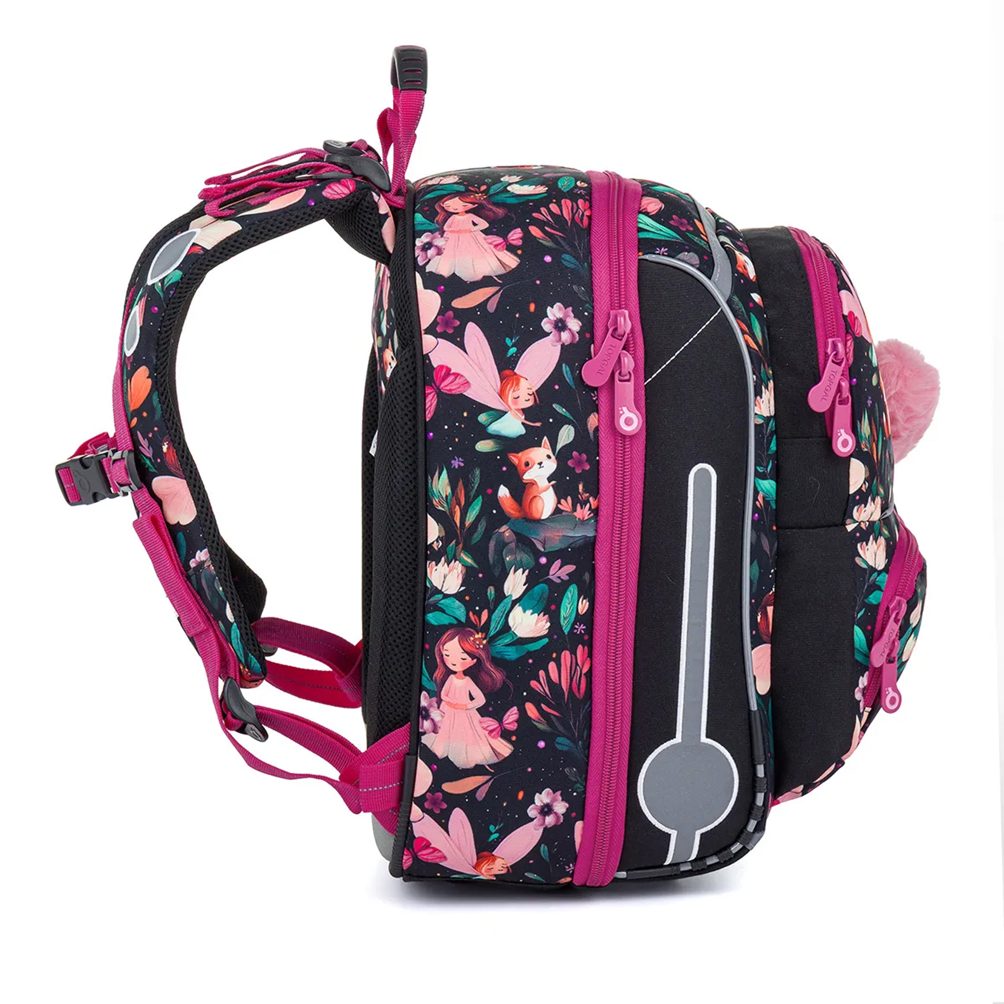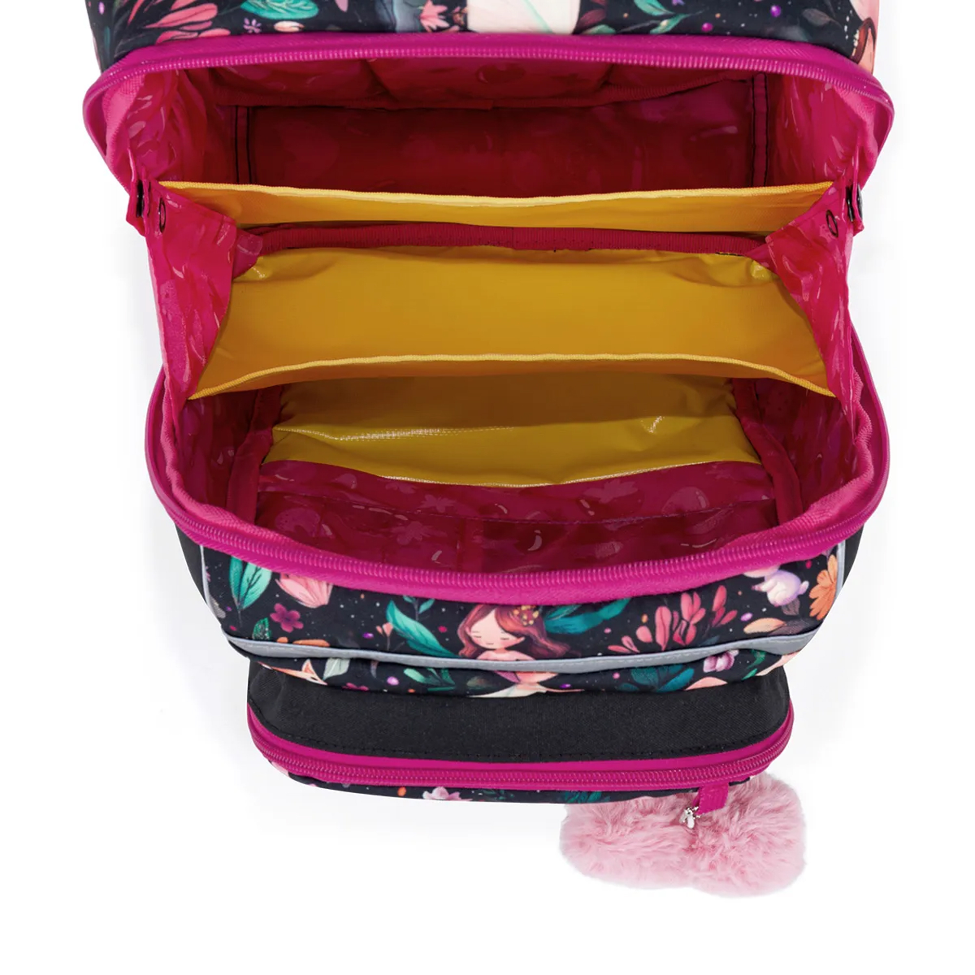 Iskolatáska Bűvös erdő a kisiskolások igényei szerint lett tervezve – könnyű, átlátható és gyönyörűen illeszkedik a hátra. A tündérek, virágok és erdei állatok romantikus motívuma rózsaszín részletekkel kombinálva olyan hátizsákot alkot, amelyet a kislánya első látásra megszeret.