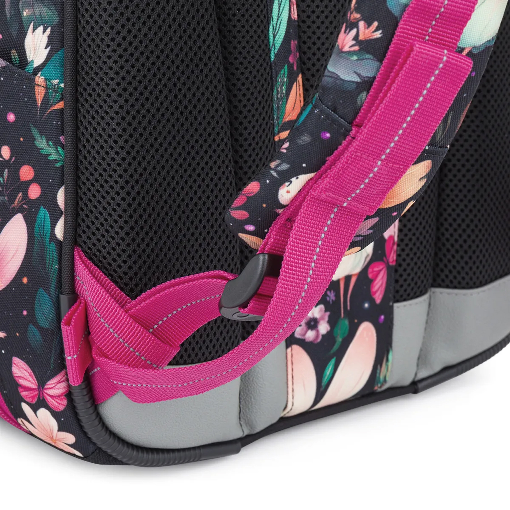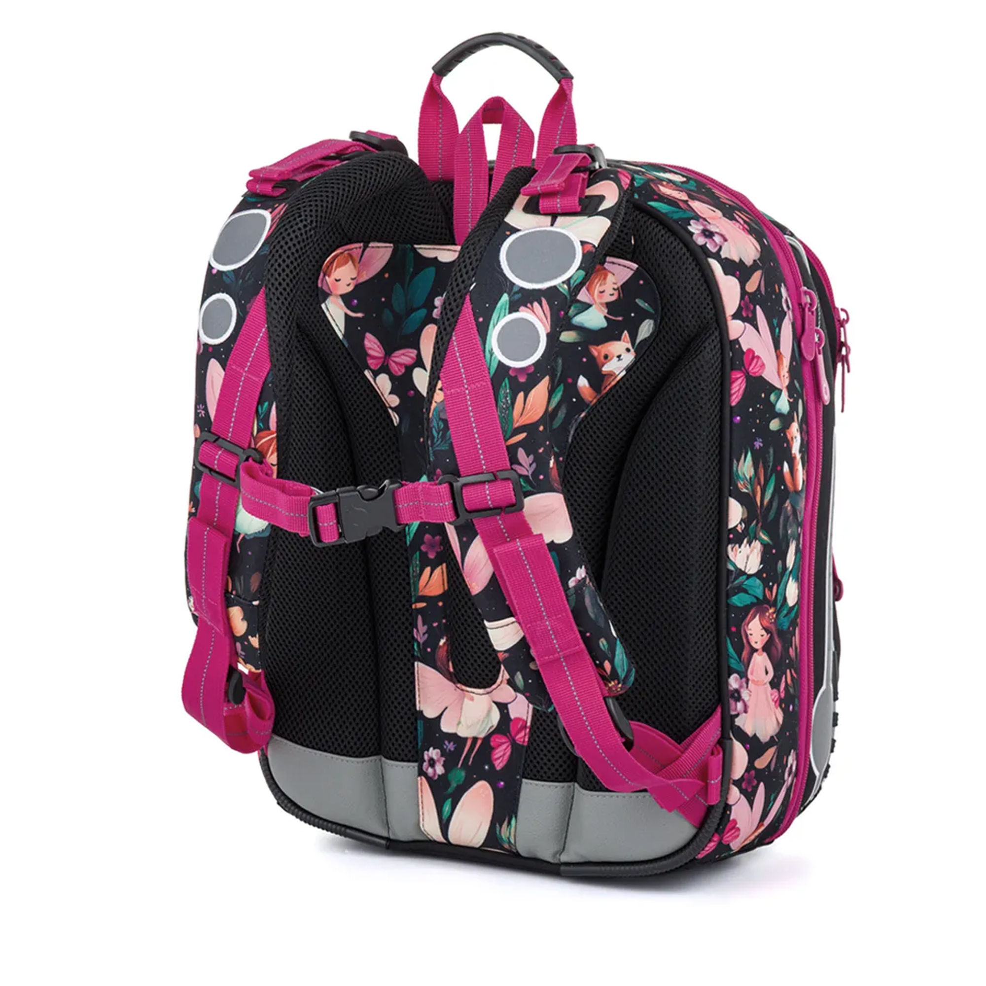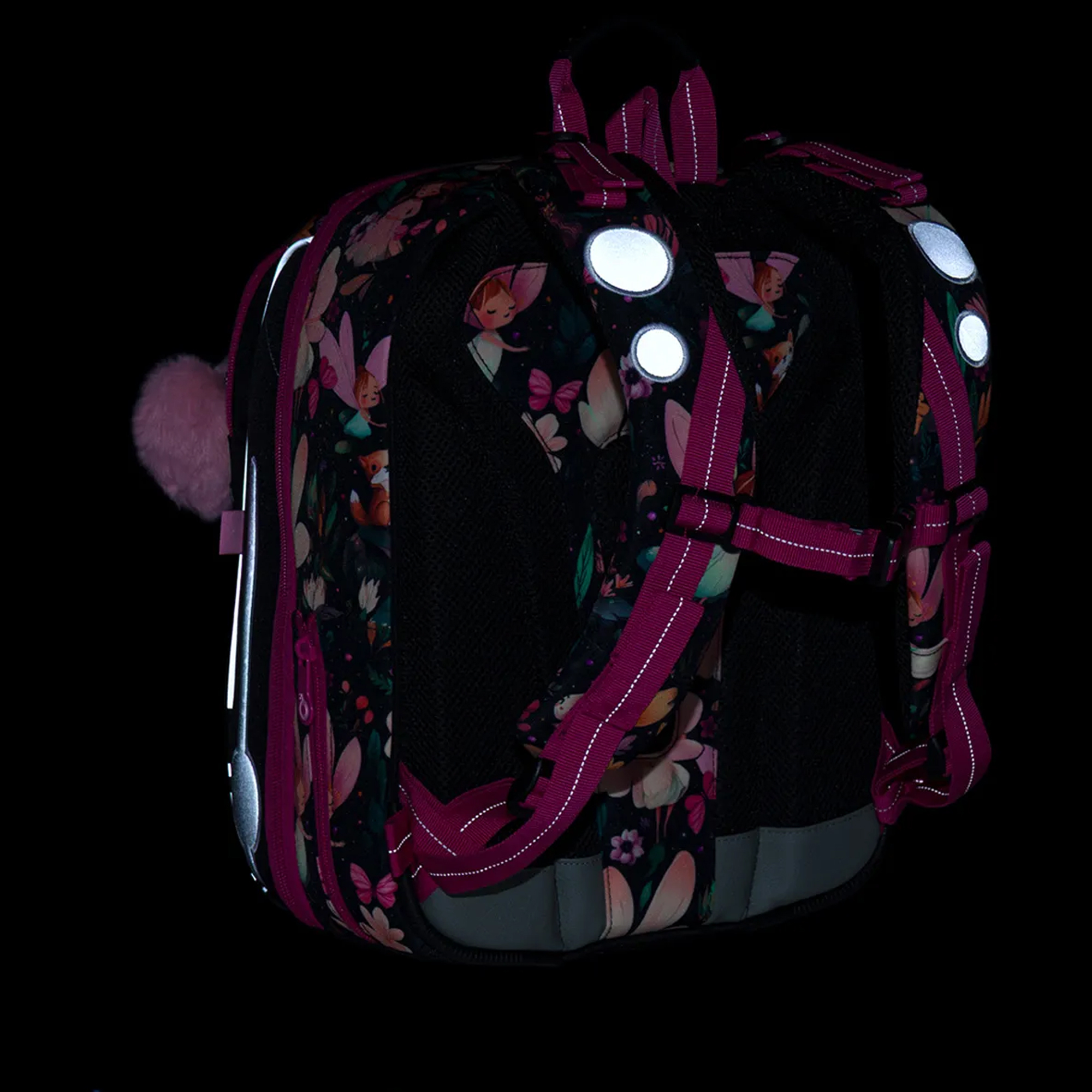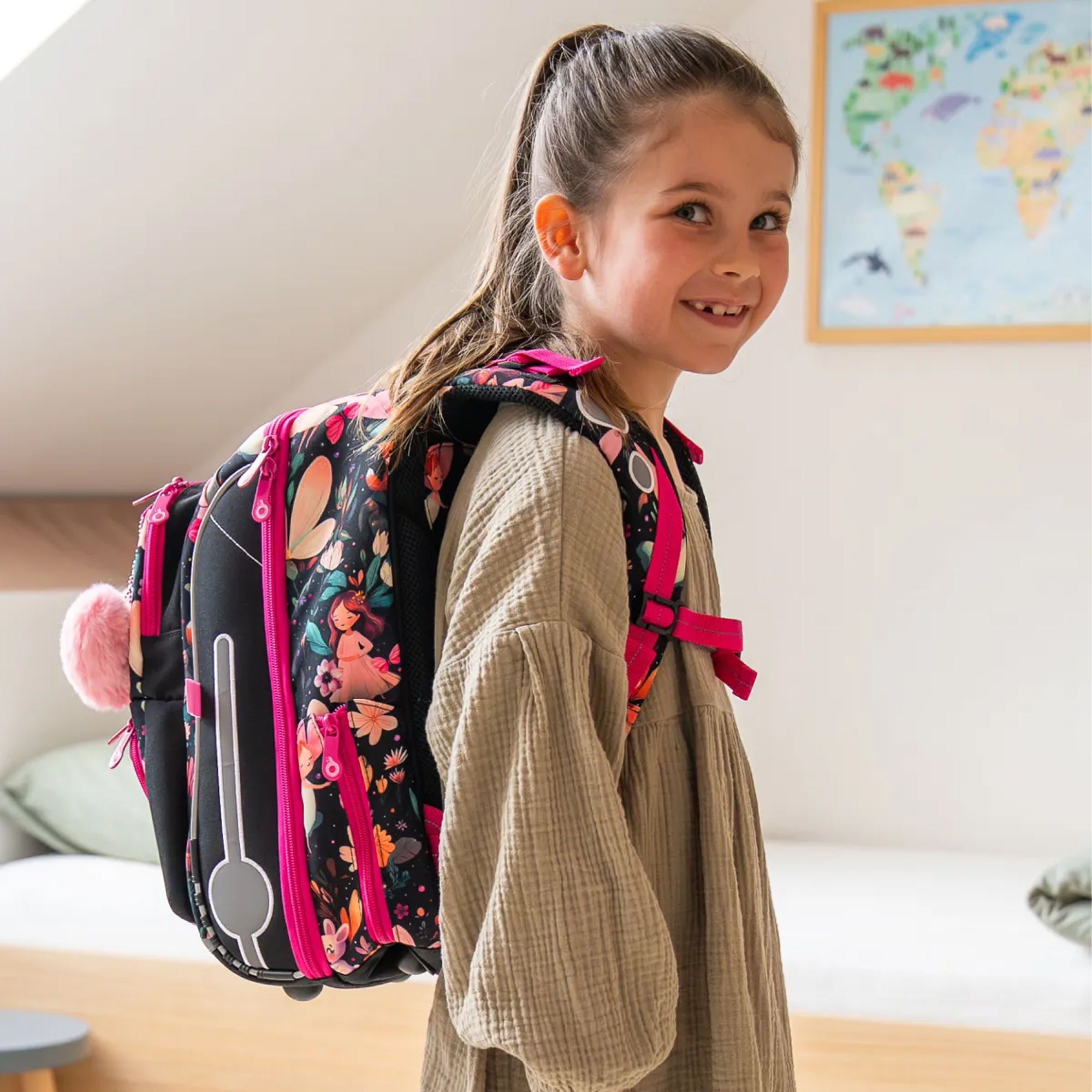A BEBE modell ideális kompromisszum a klasszikus iskolatáska és a hátizsák között, és 110 cm magasságú kislányok számára alkalmas. A dizájn inspirációja egy varázslatos erdő volt, tele titokzatos tündérekkel és mesebeli állatokkal.