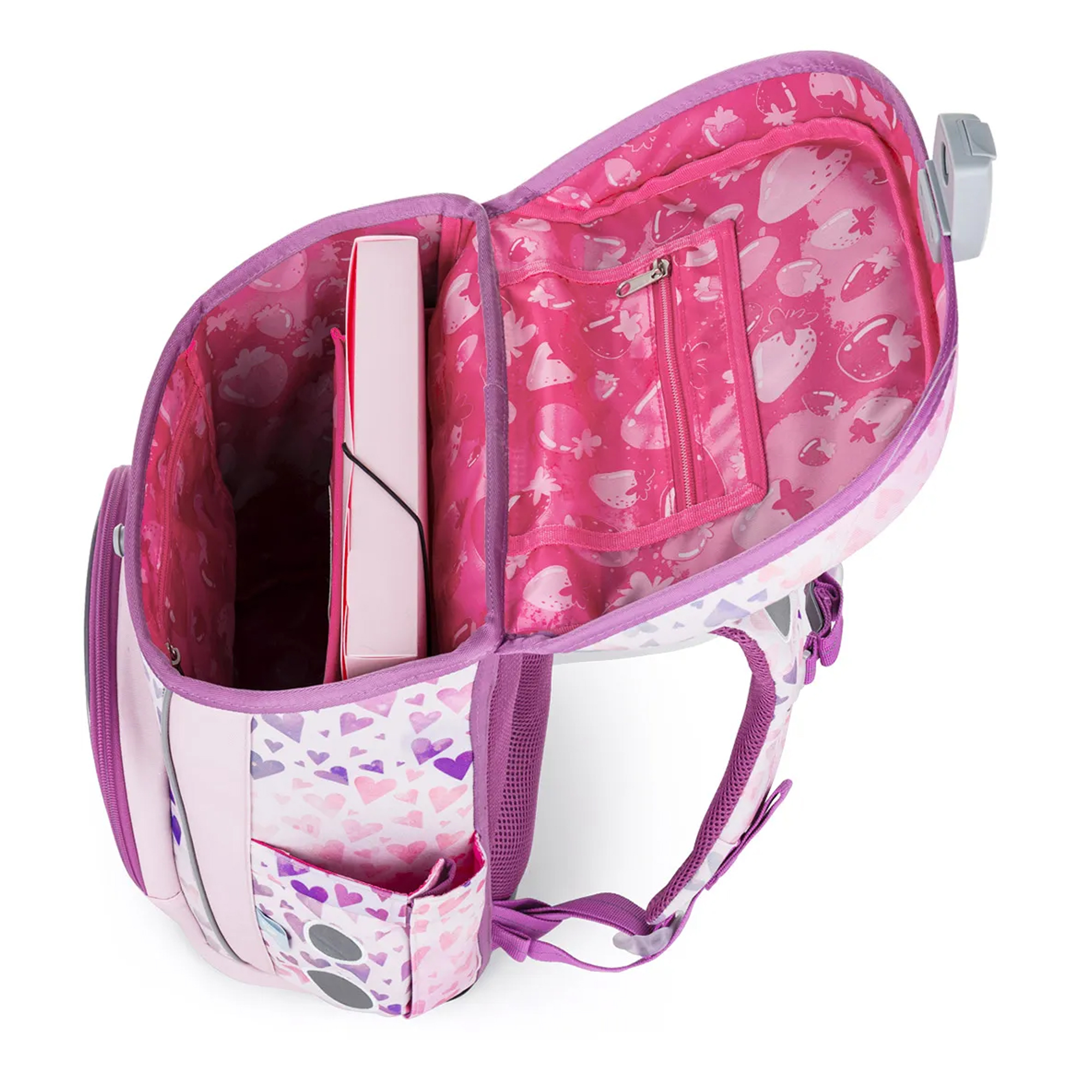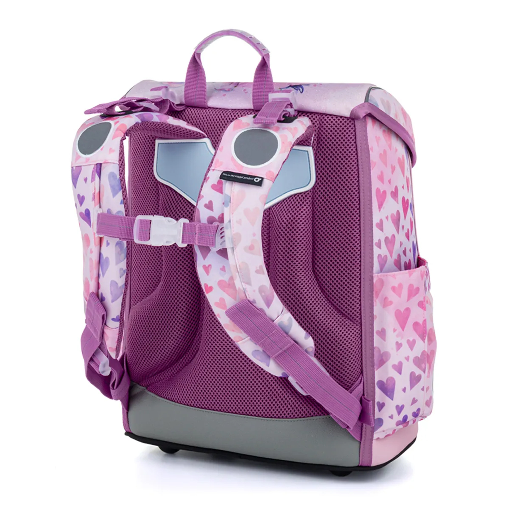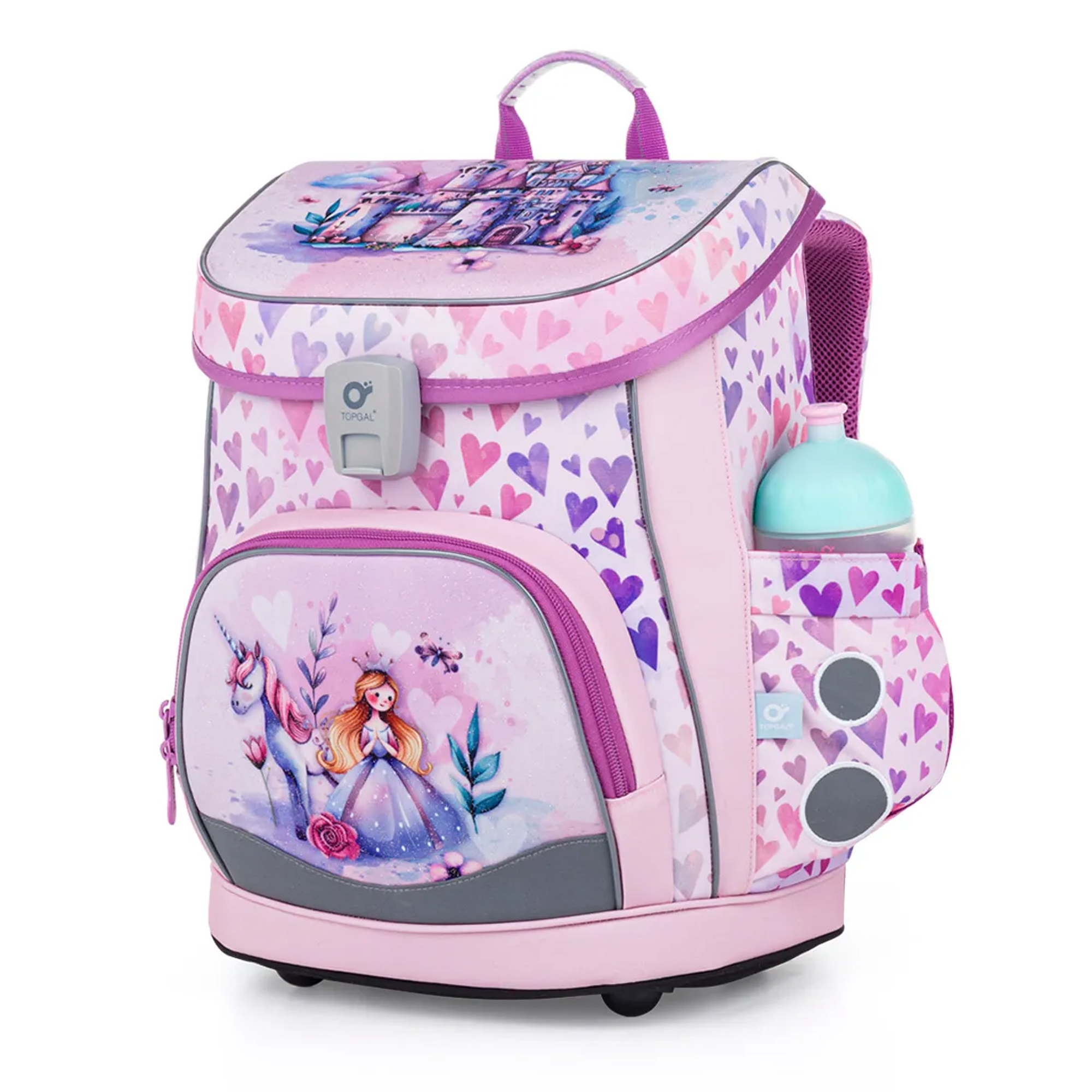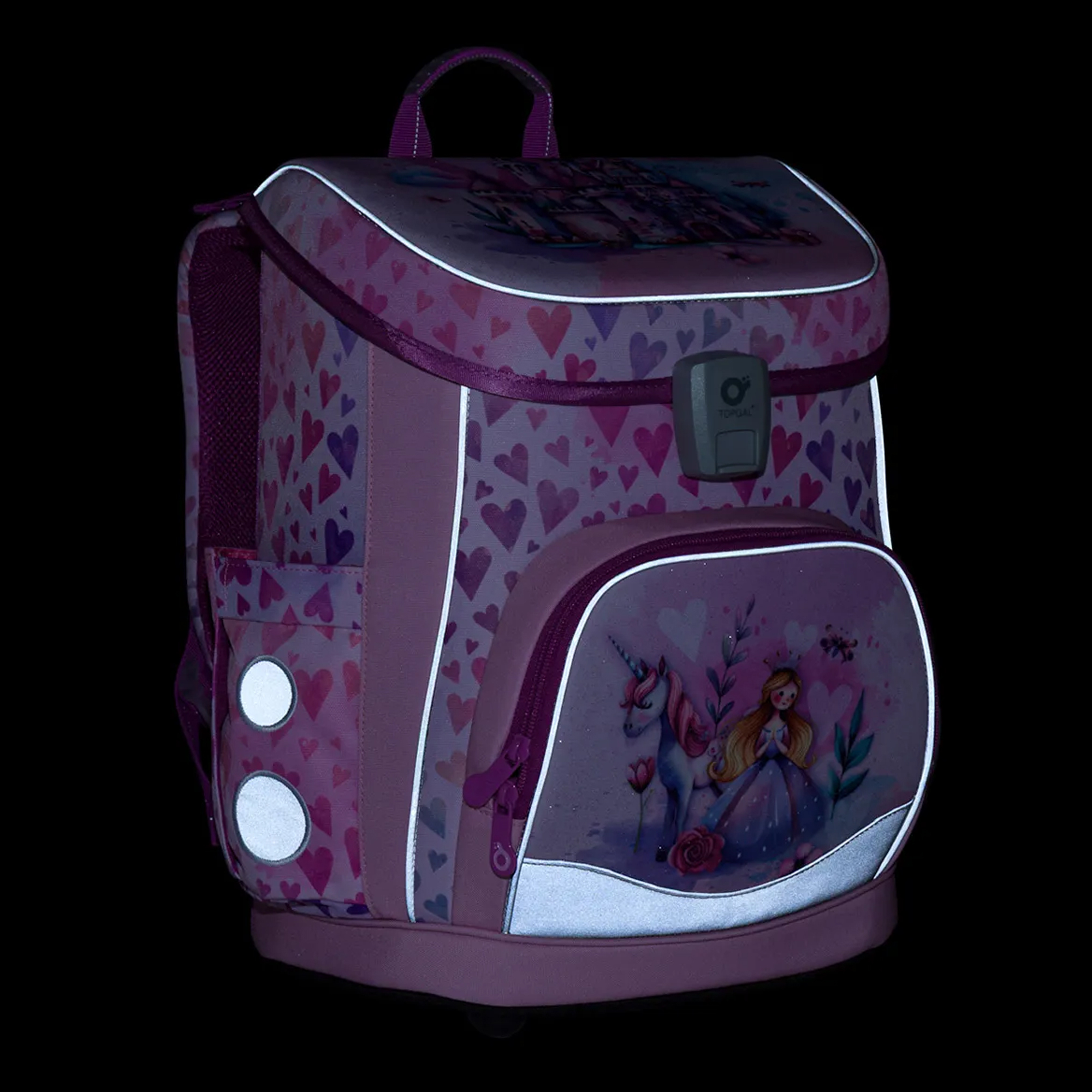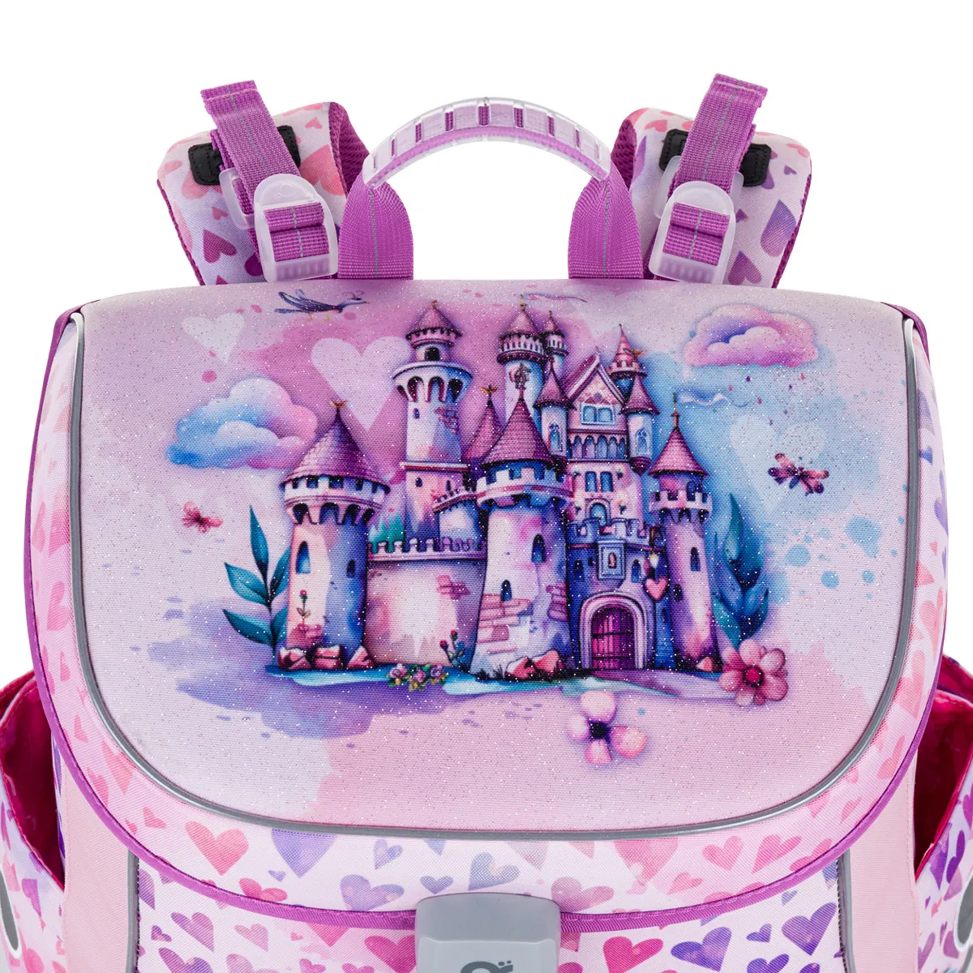 Rozprávkový ružovo-fialový motív s princeznou, jednorožcom, jemnými srdiečkami a trblietavými detailmi dodáva aktovke čarovný vzhľad. Vaša malá školáčka si ju zamiluje na prvý pohľad.