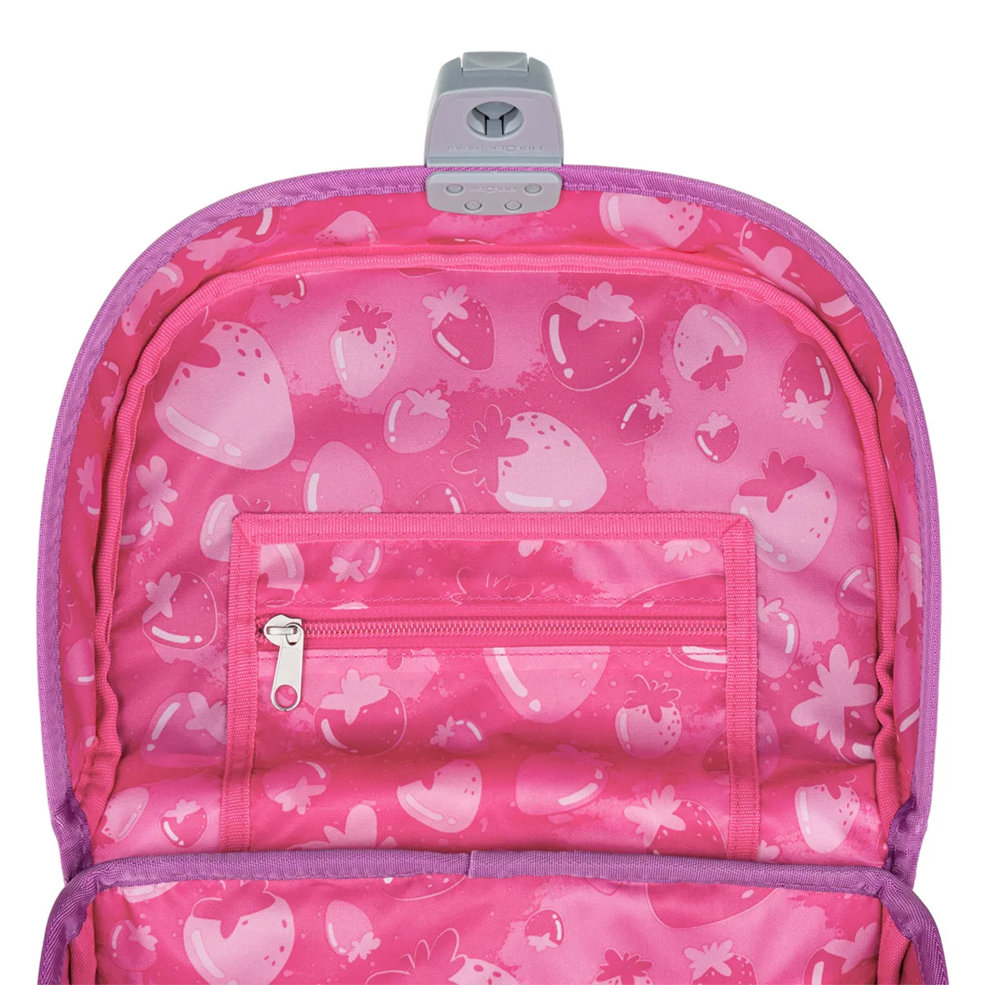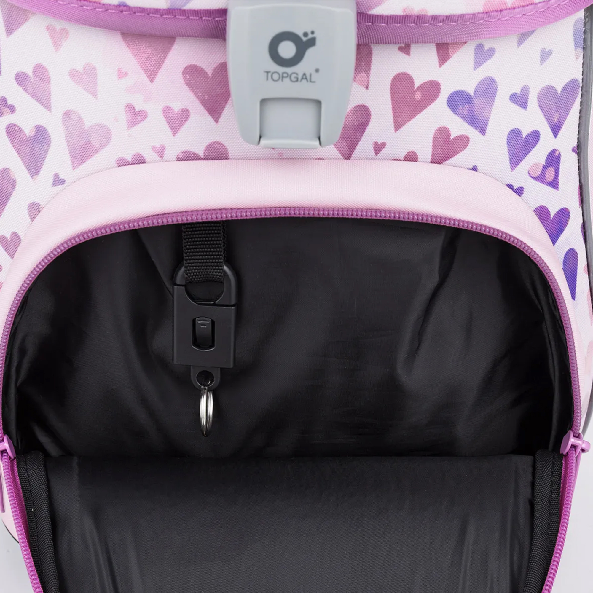 Vo vnútri priestrannej hlavnej komory nájdete praktický organizér, dve malé vrecká na drobnosti a menovku. Na bokoch sa nachádzajú dve pevné kapsy, ideálne na fľašu ZIVA s objemom 0,5 litra. Predné vrecko obsahuje odnímateľnú karabínu na kľúče – zároveň sa doň dokonale zmestí aj peračník PENN 26001 v rovnakom dizajne alebo jedna z našich krabičiek na desiatu s vyberateľným organizérom.