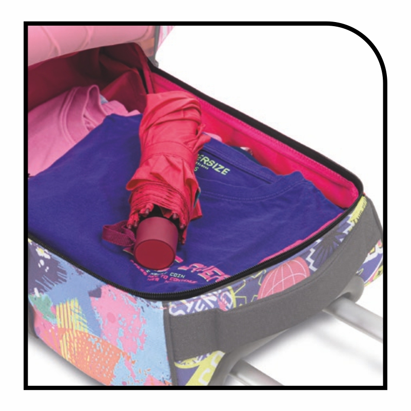 Praktická veľká školská taška na kolieskach Dr. Trolley je ideálnym riešením pre školákov aj ako príručná batožina na cestovanie. Nový model ponúka moderný okrúhly dizajn s veľkou kapacitou, dvojkomorovým úložným priestorom a zipsovým uzatváraním pre efektívne rozdelenie školských potrieb. Vďaka kombinácii plastovej a kovovej konštrukcie je taška mimoriadne odolná voči nárazom, zatiaľ čo vystužené dno zvládne každodenné používanie bez problémov. Jej vodeodolný materiál chráni obsah pred nepriaznivým počasím. Systém FAST N'GO umožňuje jednoduché vkladanie vecí bez potreby odopínania ramenných popruhov. Ramenné popruhy sú navrhnuté tak, aby sa nedotýkali zeme, čím sa znižuje riziko znečistenia. Tašku možno jednoducho ťahať alebo nosiť ako batoh, čím sa eliminuje záťaž na ramená. Vyrobená v súlade s normami REACH, rešpektuje zdravie používateľa aj životné prostredie. Rozmery: 51 x 35 x 27 cm, hmotnosť: 2,4 kg, objem: 34 l.