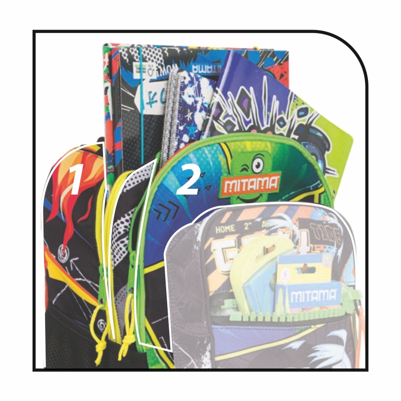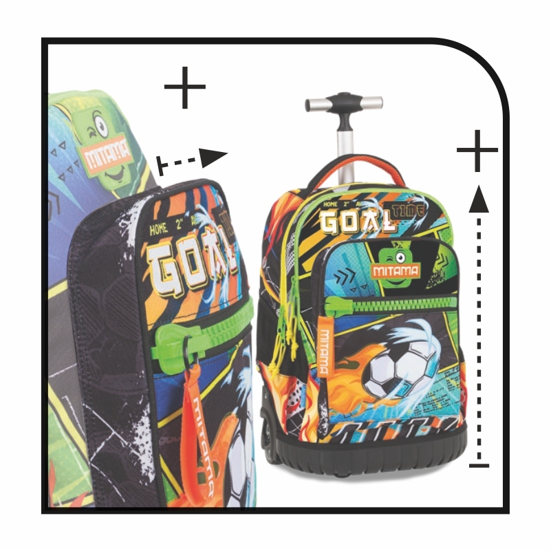 Exkluzívny batoh s kolieskami do školy alebo na voľný čas od talianskej značky MITAMA je ideálny pre najmenších školákov. Model RUN predstavuje dynamickú školskú tašku na kolieskach, ktorá kombinuje odolnosť, ľahkosť a atraktívny dizajn. Vďaka technickému spracovaniu je maximálne prispôsobený potrebám detí a každodennému používaniu. Tri priestranné vrecká umožňujú efektívne rozloženie nákladu a zabezpečujú dostatočný úložný priestor. Systém FAST N'GO umožňuje pohodlné uloženie ramenných popruhov do vrecka na chrániči, pričom nastaviteľná páska zabezpečí, že popruhy zostanú čisté a nedotýkajú sa zeme. Zosilnený nárazník spoľahlivo tlmí otrasy, zatiaľ čo mäkké 7 cm kolieska z gumy zaručujú plynulý pohyb aj po nerovnom teréne. Výškovo nastaviteľná rukoväť je prispôsobená pre deti a predné vrecko s maxi zipsom poskytuje možnosť rozšírenia kapacity. Rozmery batohu sú 47 x 37 x 27 cm, jeho hmotnosť je 2 kg a objem 33 litrov.