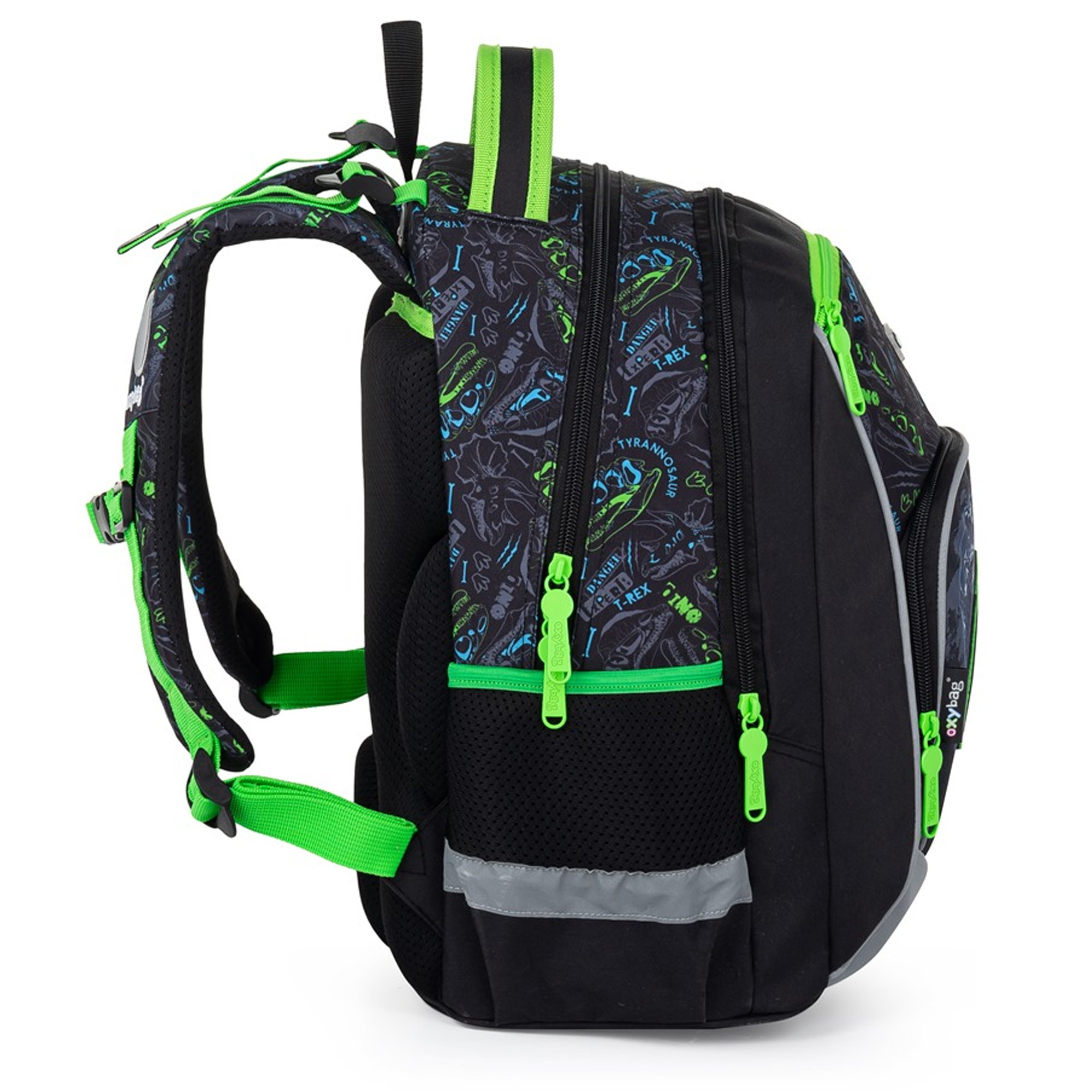 Školský batoh OXY GO je nielen vizuálne atraktívny, ale aj ergonomicky dokonalý, čo ho robí ideálnou voľbou pre prvú až tretiu triedu. Navrhnutý pre deti s výškou od 125 cm. Batoh exceluje nielen svojím nápaditým dizajnom, ale aj svojimi praktickými vlastnosťami. S nízkou hmotnosťou iba 990g a reflexnými prvkami je tento batoh ľahký aj bezpečný, čo je dôležité pre malých školákov. Ergonomický tvar skrýva anatomicky tvarovaný a priedušný chrbát, ktorý je kľúčom k zachovaniu správneho držania tela a rozloženiu hmotnosti, čím chráni chrbát vášho dieťaťa. Batoh OXY GO má dve vnútorné komory, ktoré poskytujú dostatok miesta pre učebnice, zošity a osobné veci na voľný čas. Jeho odolné dno chráni obsah batohu pred znečistením a pretečením tekutín. Po stranách sú umiestnené otvorené vrecká na fľašu a malé vrecko na zips, ktoré umožňujú rýchly prístup k drobnostiam. Predné vrecko je ideálne na desiatový box a menšie vrecko na drobnosti.