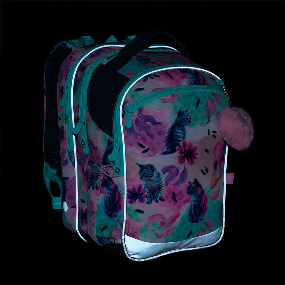 Hlavná charakteristika: váži len 900 gramov má pevnú tvarovanú chrbtovú časť dve komory a jedno hlboké predné vrecko výškovo nastaviteľný hrudný pás nastaviteľné ramenné popruhy konce ramenných popruhov sú vybavené magnetmi (pre ľahšie uchytenie vlajúcich koncov) reflexné prvky - na prednej strane a bokoch batohu záter proti dažďu pevné dno z materiálu TOPDURA opatrené nožičkami batoh testovaný v ITC Zlín odnímateľná karabínka na kľúče pútko na zavesenie batohu na lavicu pútko na prenášanie batohu v ruke Model ENDY neváži ani kilogram, preto je ideálny pre malé deti od prvej do tretej triedy základnej školy. Štyri vymeniteľné obrázky mačiatok môžete doplniť piatym, ktorý nakreslí váš malý umelec. Každý deň tak zažiari s novým batohom! Taška má dve objemné hlavné komory. Zadná komora je širšia - odporúčame k chrbtu dávať najťažšie učebnice alebo dosky na zošity. Predná komora je o niečo užšia a je v nej umiestnené ešte malé sieťované vrecko na zips a menovka. Do predného hlbokého vrecka sa zmestí napríklad peračník PENN 23037 v rovnakom dizajne alebo box na desiatu. Do bočných vreciek sa zmestia fľaše s objemom 0,5 l, napríklad naša ZIVA. Náš tip: PPosvieťte si na batoh v tme a uvidíte, koľkými reflexnými prvkami je vybavený. Výrazne presahuje odporúčané množstvo reflexných prvkov, takže vaše dieťa v tme nikto neprehliadne.